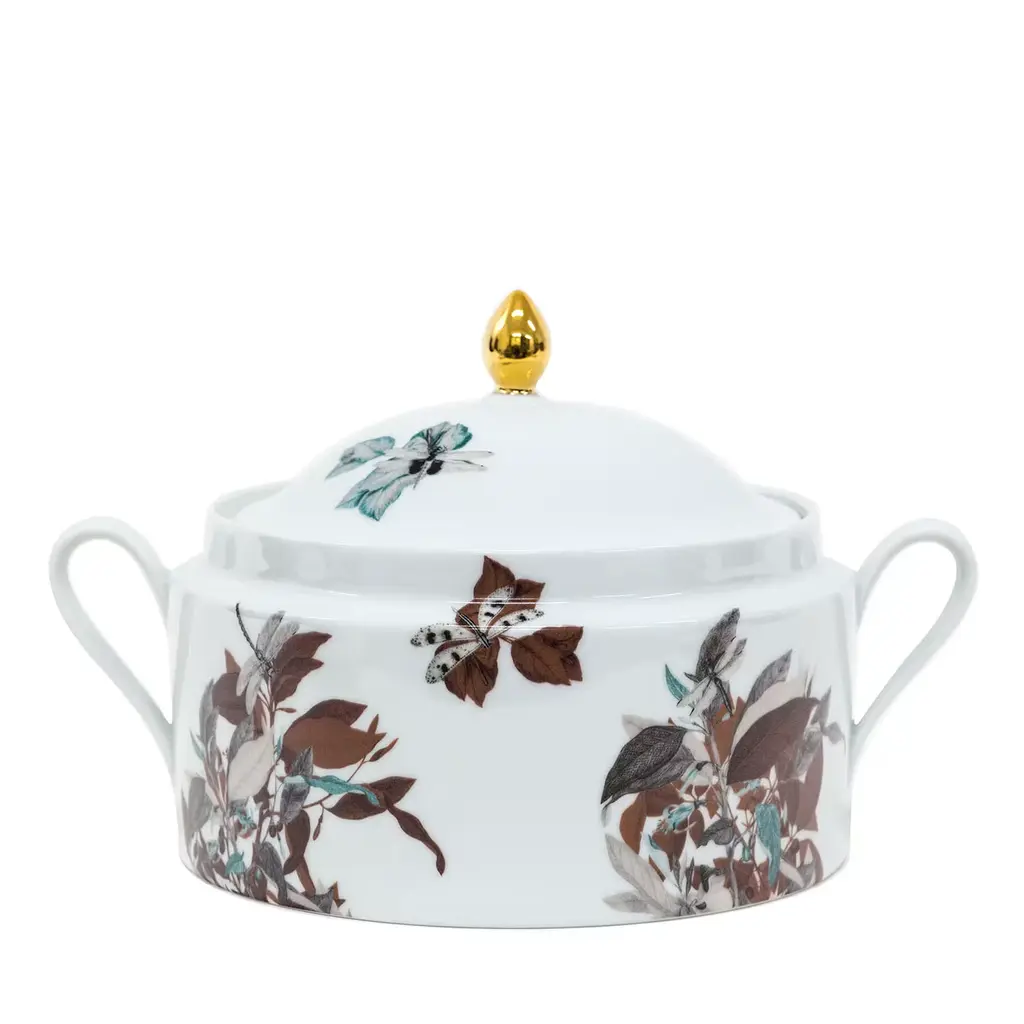 Introducing the elegant Coralina floral soup tureen, a magnificent addition to your tableware collection, masterfully designed by the renowned Oscar de la Renta. This stunning floral soup tureen showcases the same intricate floral motifs as the red sugar bowl, inspired by a dress created for Vogue magazine in September 2006. The exquisite design captures the sophistication and splendor that are hallmarks of the designer’s illustrious career. Crafted from the finest porcelain, the Coralina floral soup tureen promises both beauty and durability. The rich, vibrant colors make this floral soup tureen an eye-catching centerpiece for any dining occasion, perfect for serving your culinary creations with elegance. Please note that the Coralina Floral Soup Tureen is not suitable for microwave use. To preserve its elegance and longevity, we recommend hand washing. If you prefer to use a dishwasher, opt for short cycles at low temperatures and avoid frequent use to maintain its pristine condition.