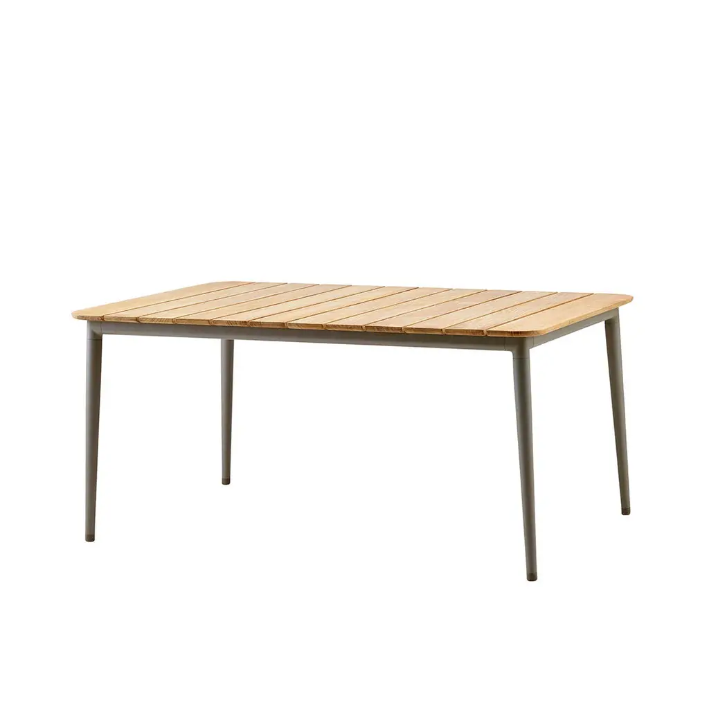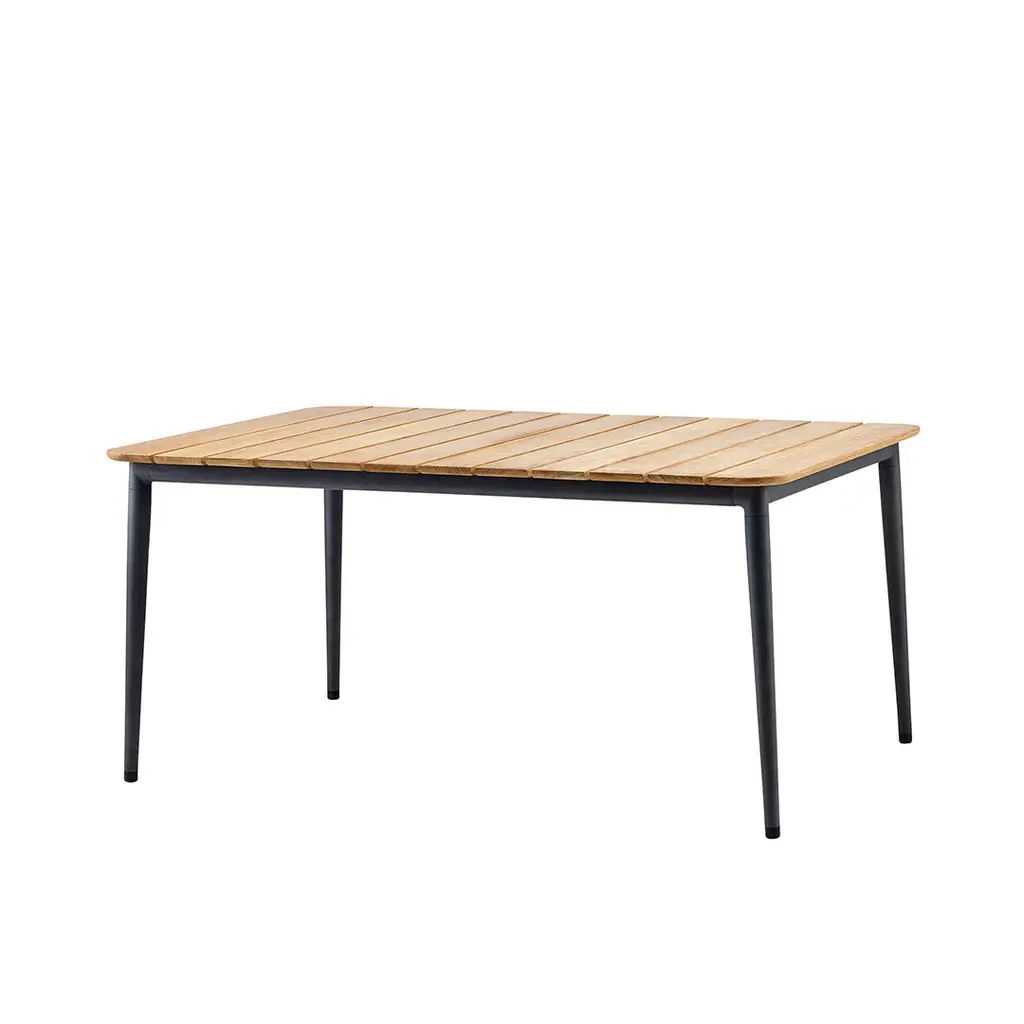 Cane-line's new table Core combines the classic with the modern and lifts the use of teak in outdoor furniture to new levels. The soft curves of the table top are paired with a frame of conical pipes in powder coated aluminum. The result is a table that in spite of its light appearance is very strong and hardwearing. The teak slats are hand-selected and of highest quality, supplied by WWF/GFTN certified members in Indonesia. The Core tables come in three different sizes and two frame colours enabling you to find the right table for your needs. Core is designed by Foersom + Hiort-Lorenzen.