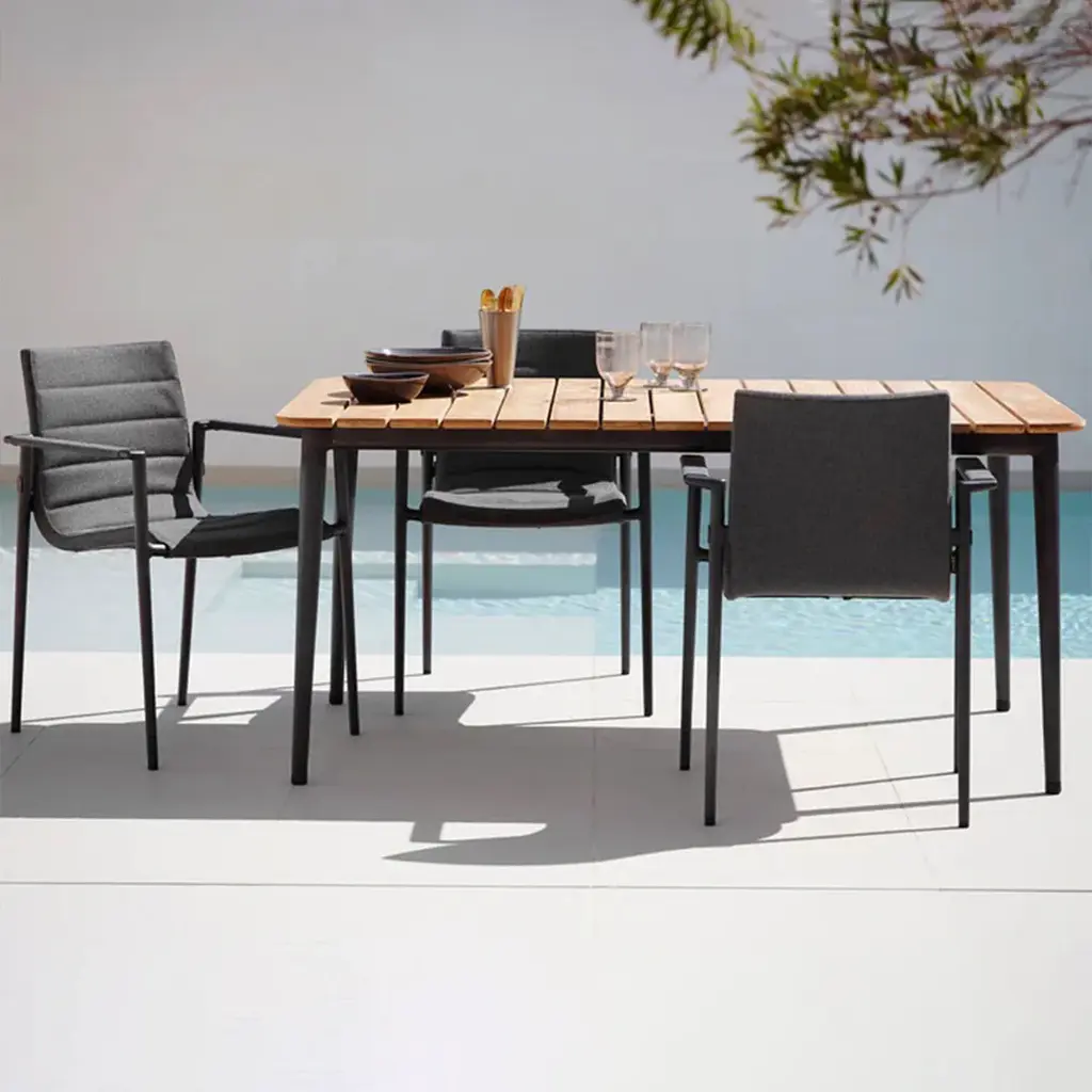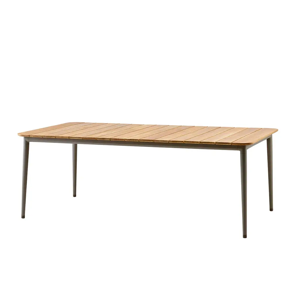 Cane-line's new table Core combines the classic with the modern and lifts the use of teak in outdoor furniture to new levels. The soft curves of the table top are paired with a frame of conical pipes in powder coated aluminum. The result is a table that in spite of its light appearance is very strong and hardwearing. The teak slats are hand-selected and of highest quality, supplied by WWF/GFTN certified members in Indonesia. The Core tables come in three different sizes and two frame colours enabling you to find the right table for your needs. Core is designed by Foersom + Hiort-Lorenzen.