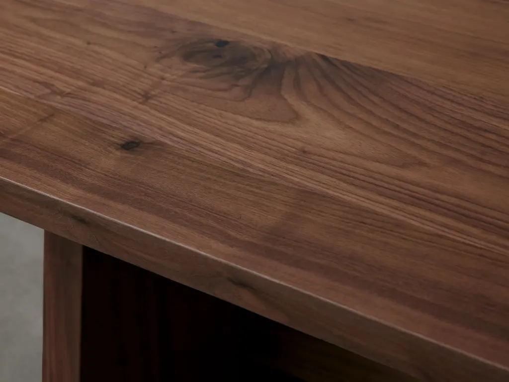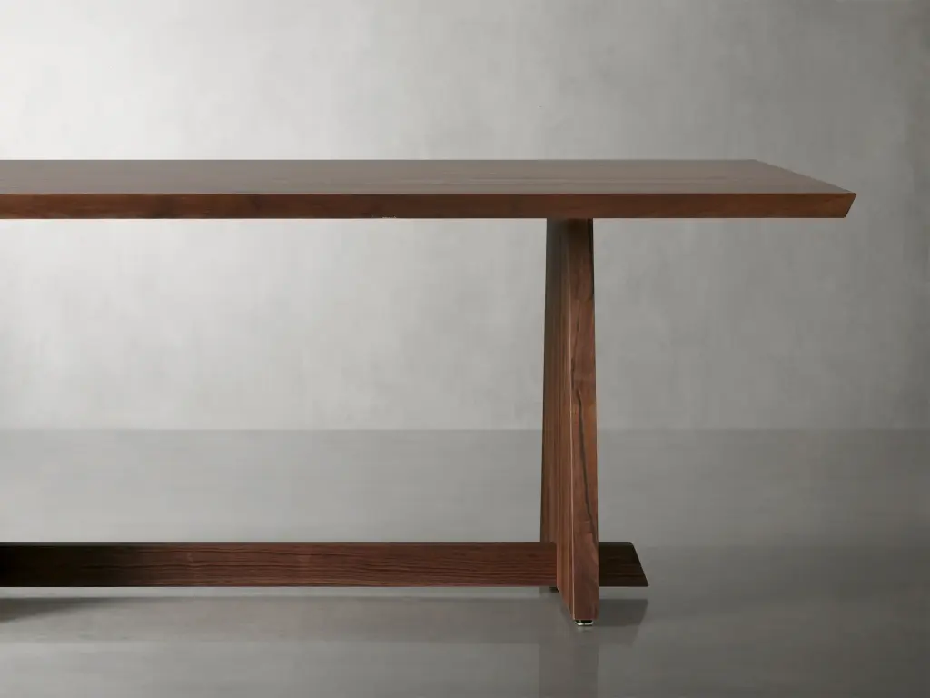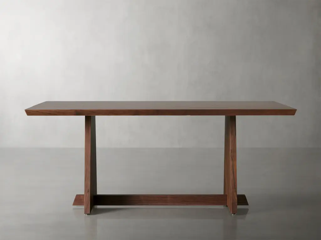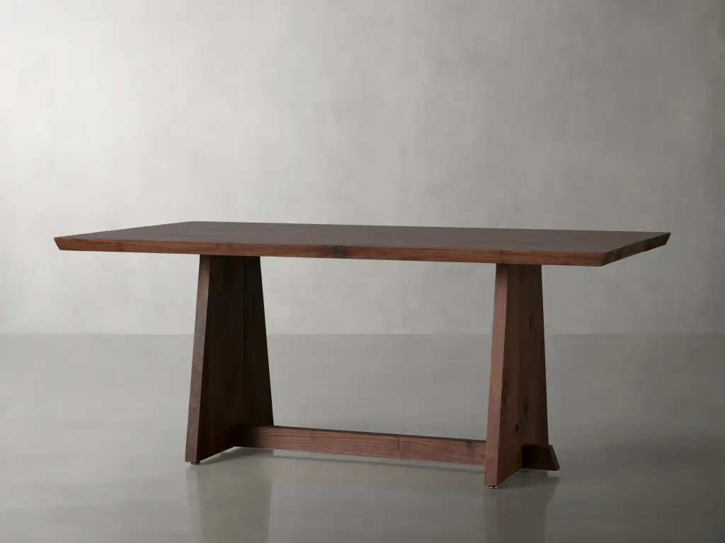 Handcrafted in America by our Amish artisan partners, our Cormac Dining Collection features an angular silhouette with unique inverted tabletop edges that complement both modern and traditional design styles. Hand-applied stains and varnishes create a subtle sheen to accentuate the walnut wood’s natural beauty and graining variations.