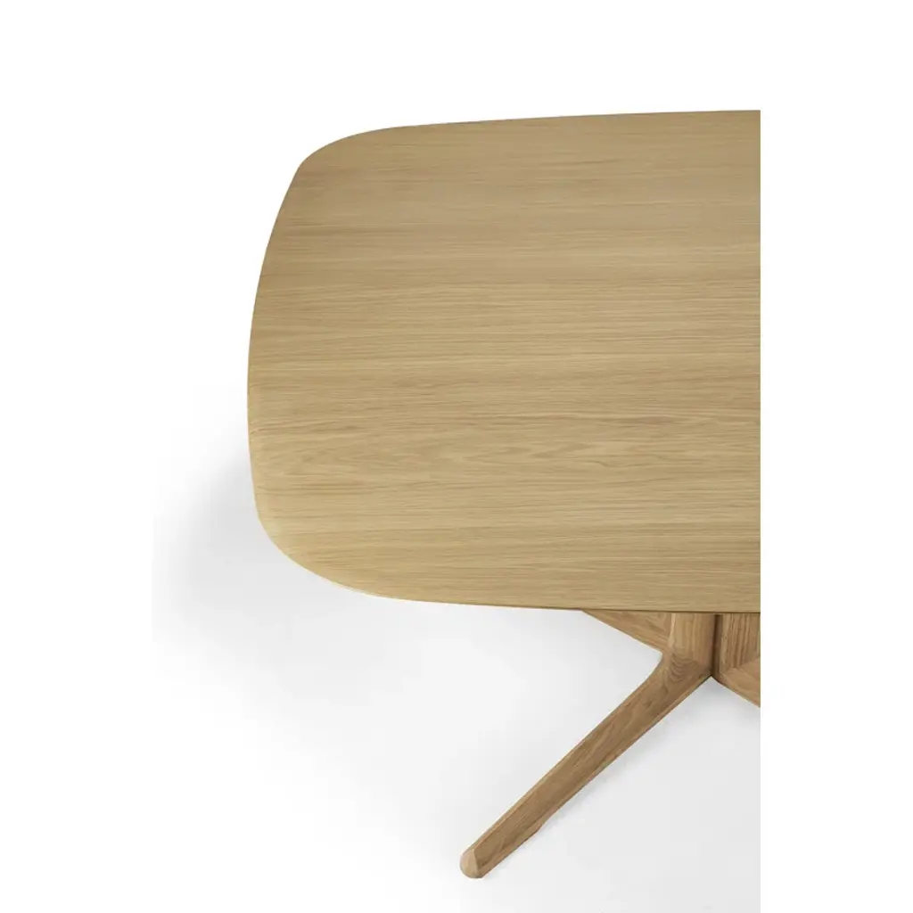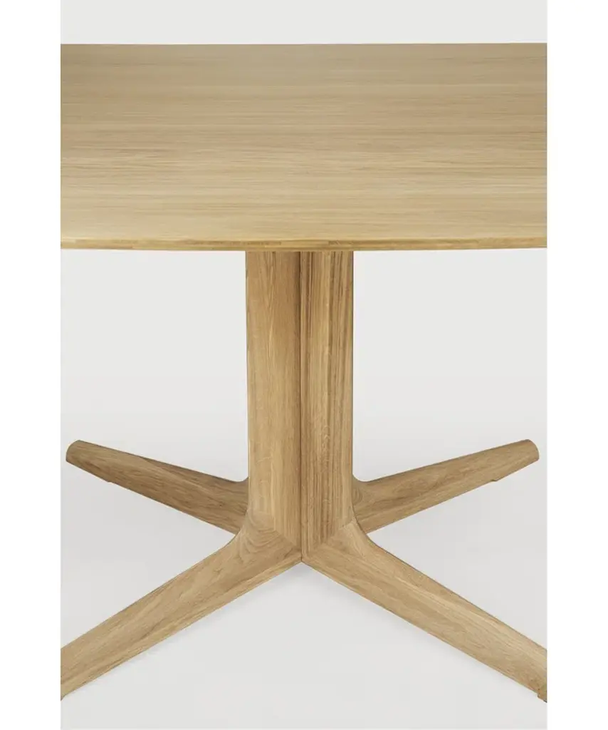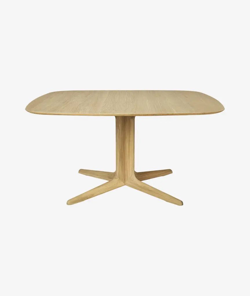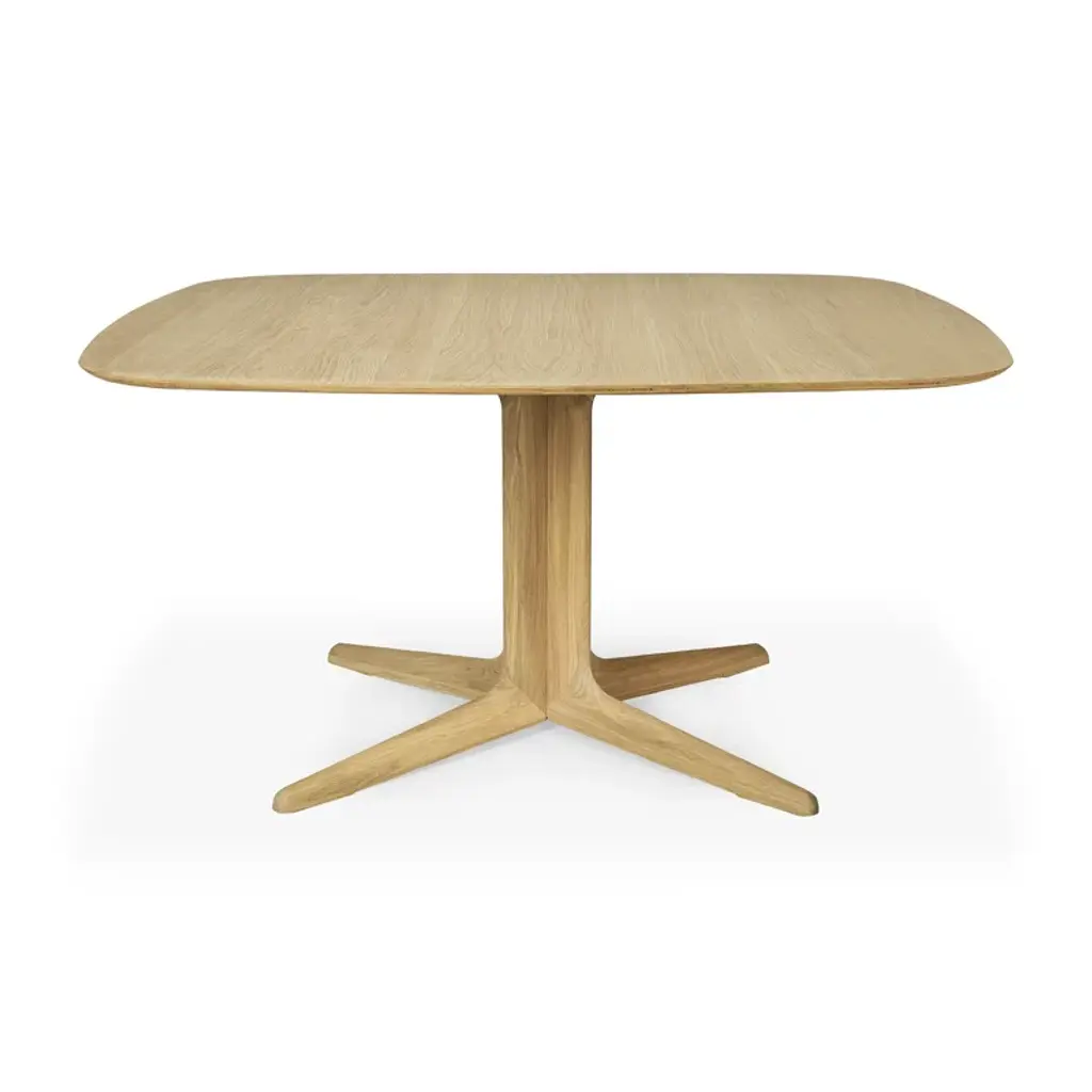 Inspired by the vaults within grand architectural designs, the Corto's central-footed base provides both visual interest and practical stability with less leg disturbance for your guests. The solid oak tabletop is crafted into the perfect shape, with unique rounded corners to create welcoming and comfortable social or professional gatherings.