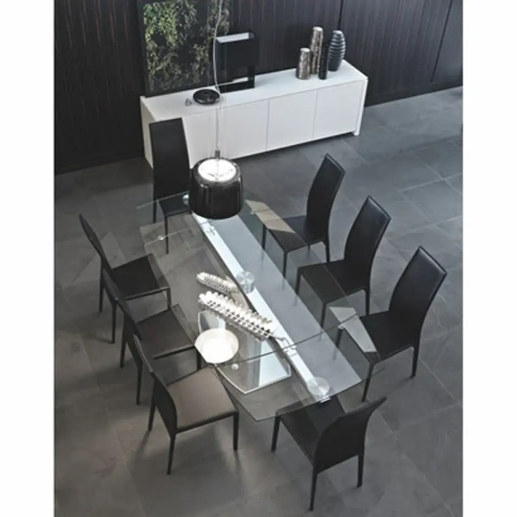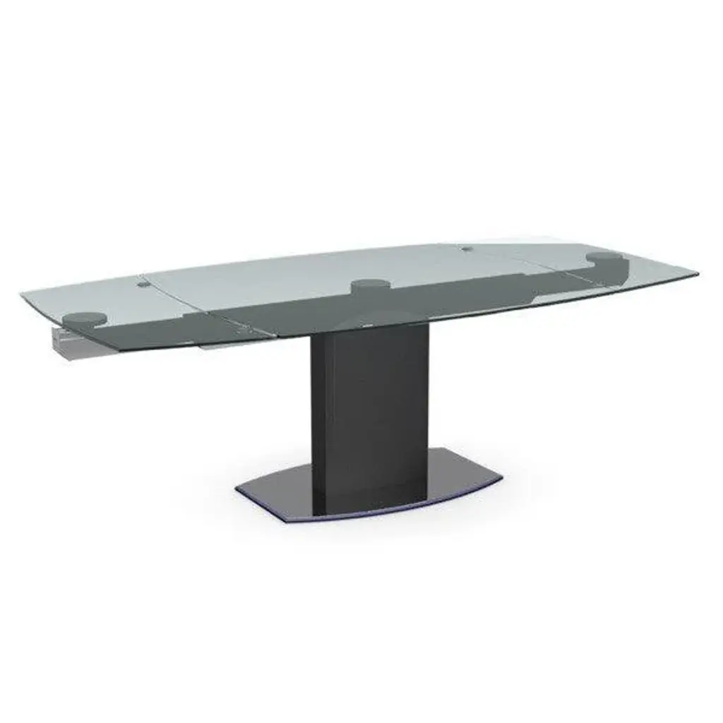 Our Cosmic Dining Extending Table by Calligaris is a stylish table for living/dining areas: it features a metal sturdy pedestal base and a rectangular glass top with slightly curved edges which can be extended thanks to an automatic device patented by Calligaris.  Features: