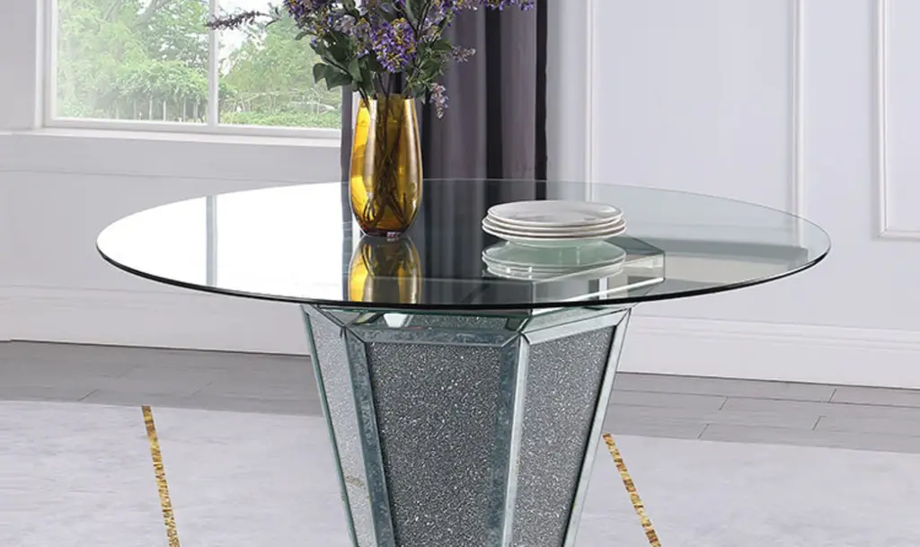 Cosmos Diva Modern Silver Glass Dining Table With Crystal Base