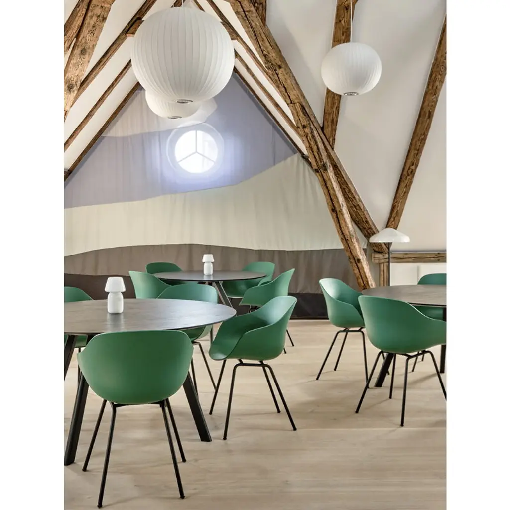HAY's CPH20 table is part of the Copenhague furniture collection designed by Ronan and Erwan Bouroullec. HAY invited the Bouroullec brothers to design the furniture for the new buildings of the University of Copenhagen (KUA) – hence the collection's name! The Bouroullec brothers wanted to create furniture with greater originality and a more domestic expression than traditional educational furniture. The Copenhague collection fits all kinds of public spaces as well as private use: the sleek table can be used as a dining table in the home as well as in restaurants. HAY has updated the much-loved CPH collection a couple of times. In 2021, the original lacquer was replaced with a new, more environmentally friendly water-based alternative. In 2024, the material of the tabletop was renewed: the tables are exactly the same shape as before, but instead of plywood, the edge is now made of durable MDF.