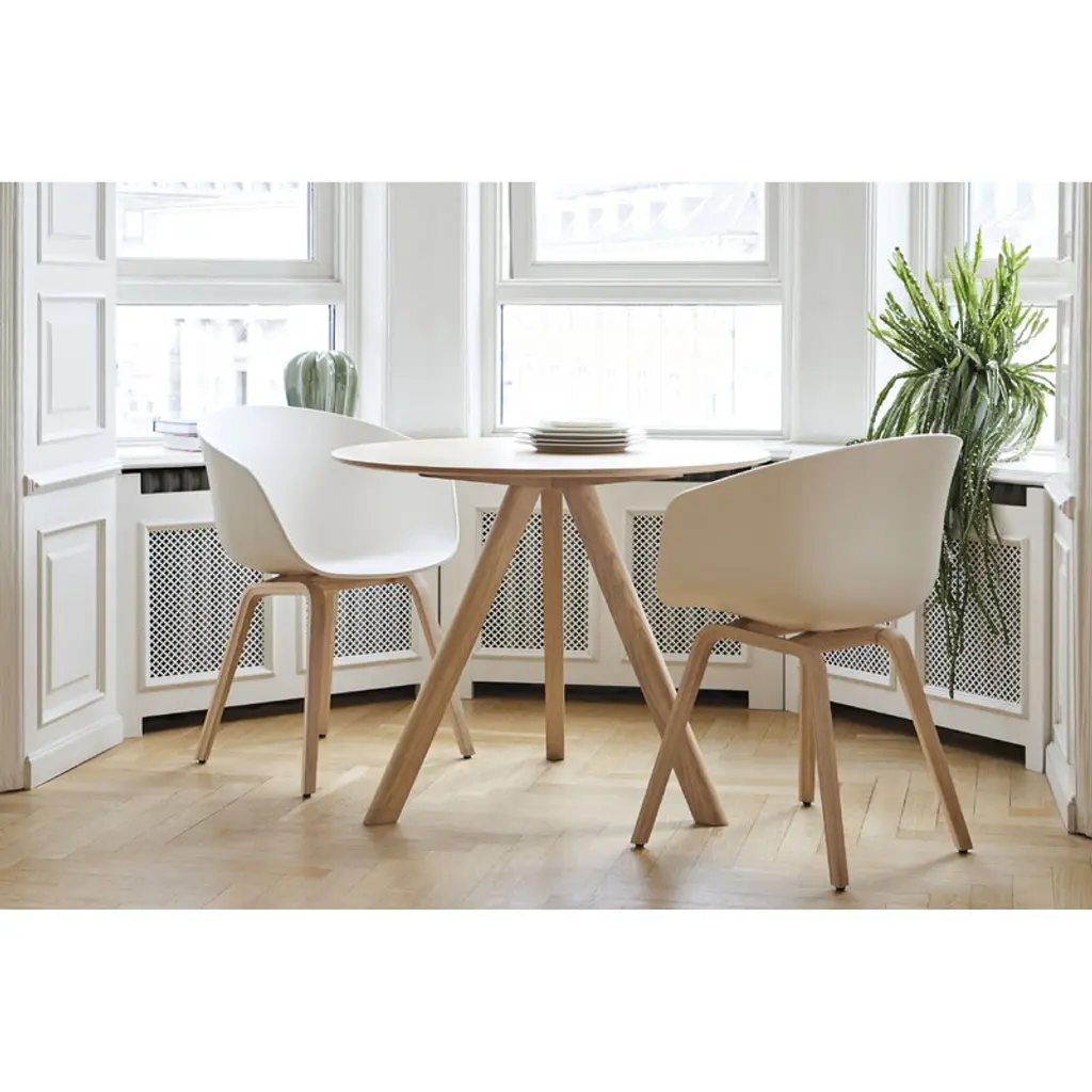 HAY's CPH20 table is part of the Copenhague furniture collection designed by Ronan and Erwan Bouroullec. HAY invited the Bouroullec brothers to design the furniture for the new buildings of the University of Copenhagen (KUA) – hence the collection's name! The Bouroullec brothers wanted to create furniture with greater originality and a more domestic expression than traditional educational furniture. The Copenhague collection fits all kinds of public spaces as well as private use: the sleek table can be used as a dining table in the home as well as in restaurants. HAY has updated the much-loved CPH collection a couple of times. In 2021, the original lacquer was replaced with a new, more environmentally friendly water-based alternative. In 2024, the material of the tabletop was renewed: the tables are exactly the same shape as before, but instead of plywood, the edge is now made of durable MDF.