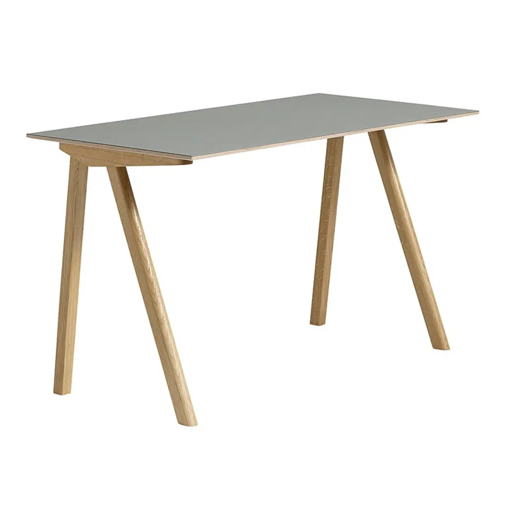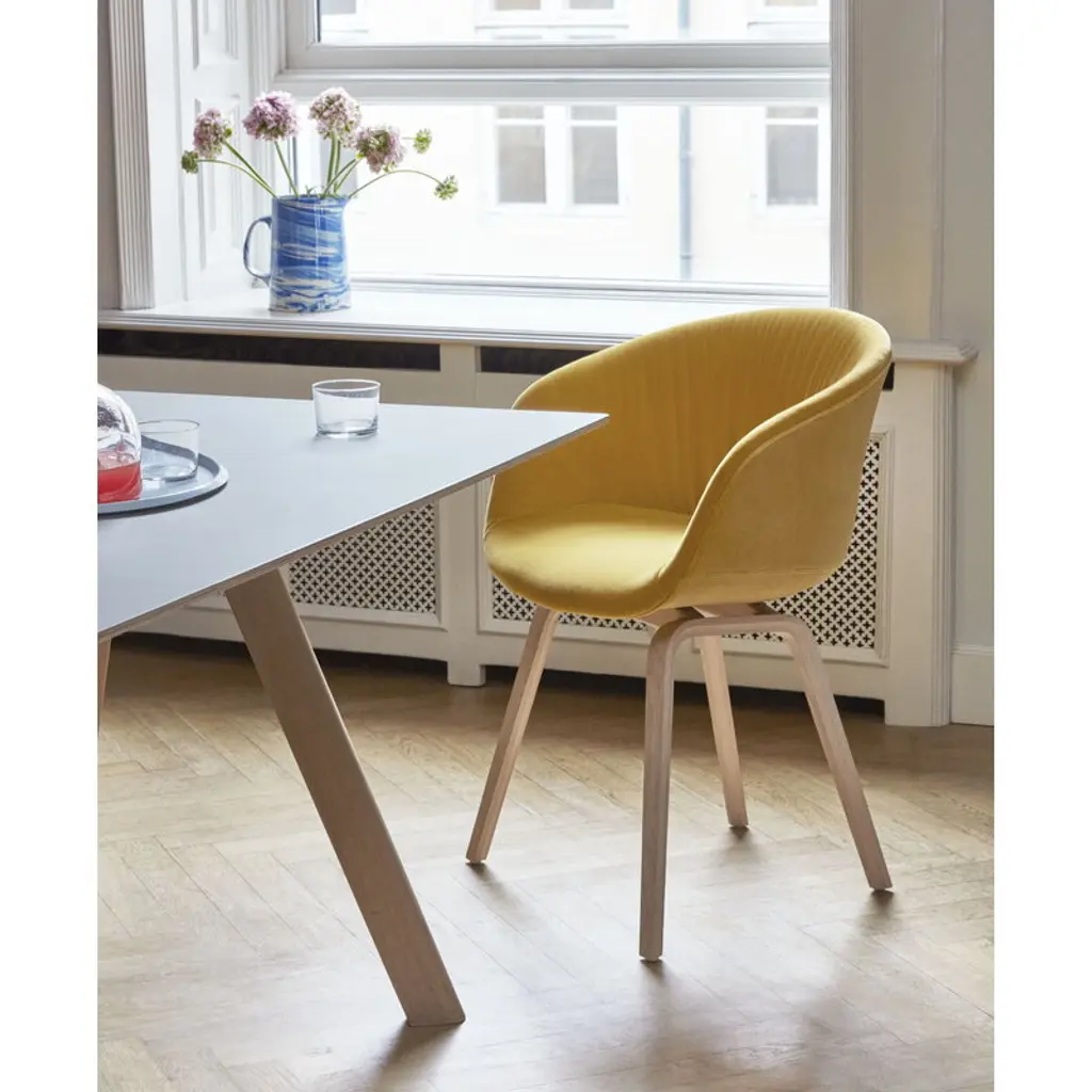 HAY's CPH30 table is part of the Copenhague furniture collection designed by Ronan and Erwan Bouroullec. HAY invited the Bouroullec brothers to design the furniture for the new buildings of the University of Copenhagen (KUA) – hence the collection's name! The Bouroullec brothers wanted to create furniture with greater originality and a more domestic expression than traditional educational furniture. The Copenhague collection fits all kinds of public spaces as well as private use: the large table is equally suitable for use as a dining table or desk. HAY has updated the much-loved CPH collection a couple of times. In 2021, the original lacquer was replaced with a new, more environmentally friendly water-based alternative. In 2024, the material of the tabletop was renewed: the tables are exactly the same shape as before, but instead of plywood, the edge is now made of durable MDF.