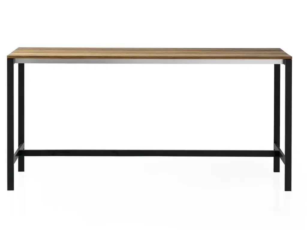 Industrial style at its finest. This bar table features a beautiful, solid acacia-wood top with a warm, caramel finish, paired with a matt-black, powder-coated base. Ideal for dinner, drinks, or the coolest man cave on the block.