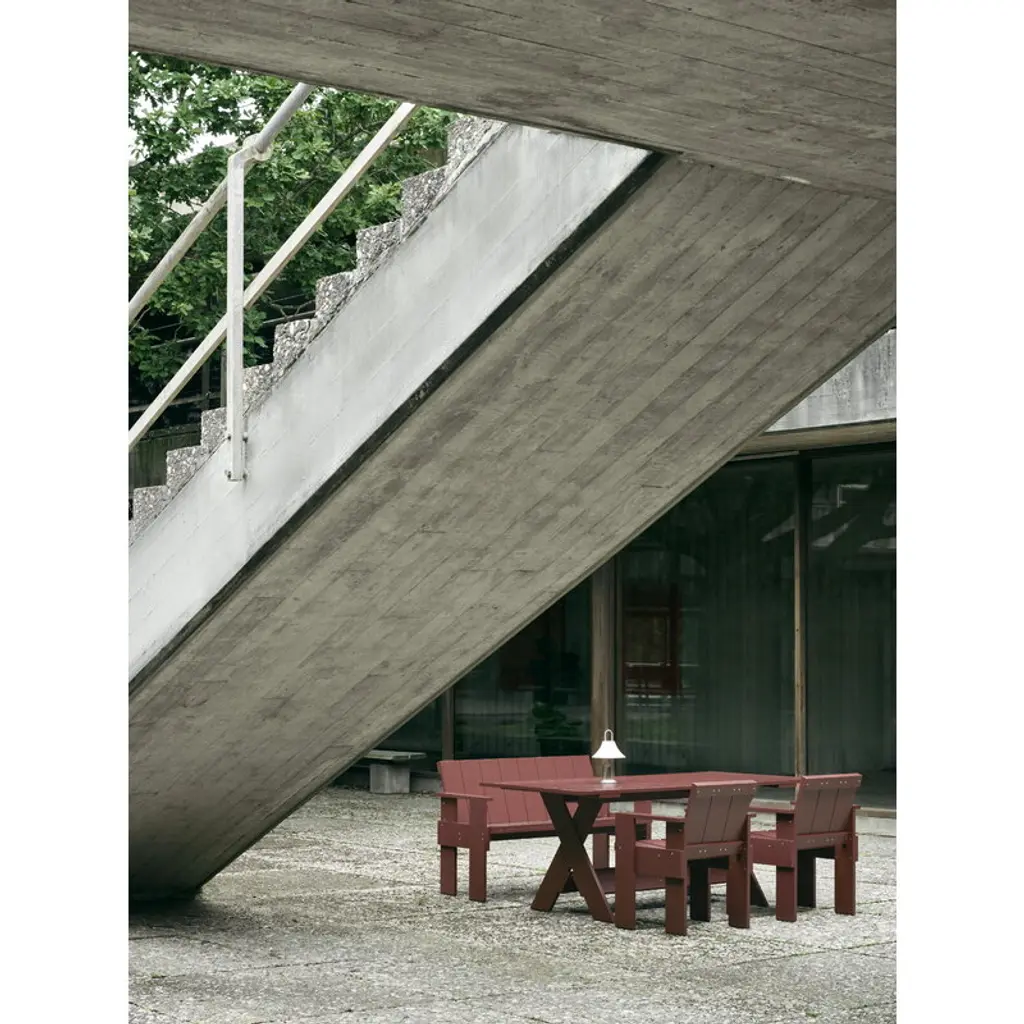 The Crate dining table is part of HAY’s collection of wooden outdoor furniture. The sturdy Crate table is characterized by its clean and balanced lines, which give the dining table an architectural and elegant look. The table pairs perfectly with HAY's Crate chairs, but also steals the spotlight as a companion to other patio furniture – try how the pine table would sit alongside HAY's classic Palissade chairs, for example! The first Crate table was designed by Dutch architect and designer Gerrit Thomas Rietveld in 1934. At that time, the Crate furniture was made from leftover wooden shipping crates – hence the name of the collection. Today, Rietveld Originals and HAY use lacquered pine as the material. Finished with a weatherproof coating, the long Crate dining table is ideal for all kinds of outdoor spaces from the terrace to the garden and balcony.