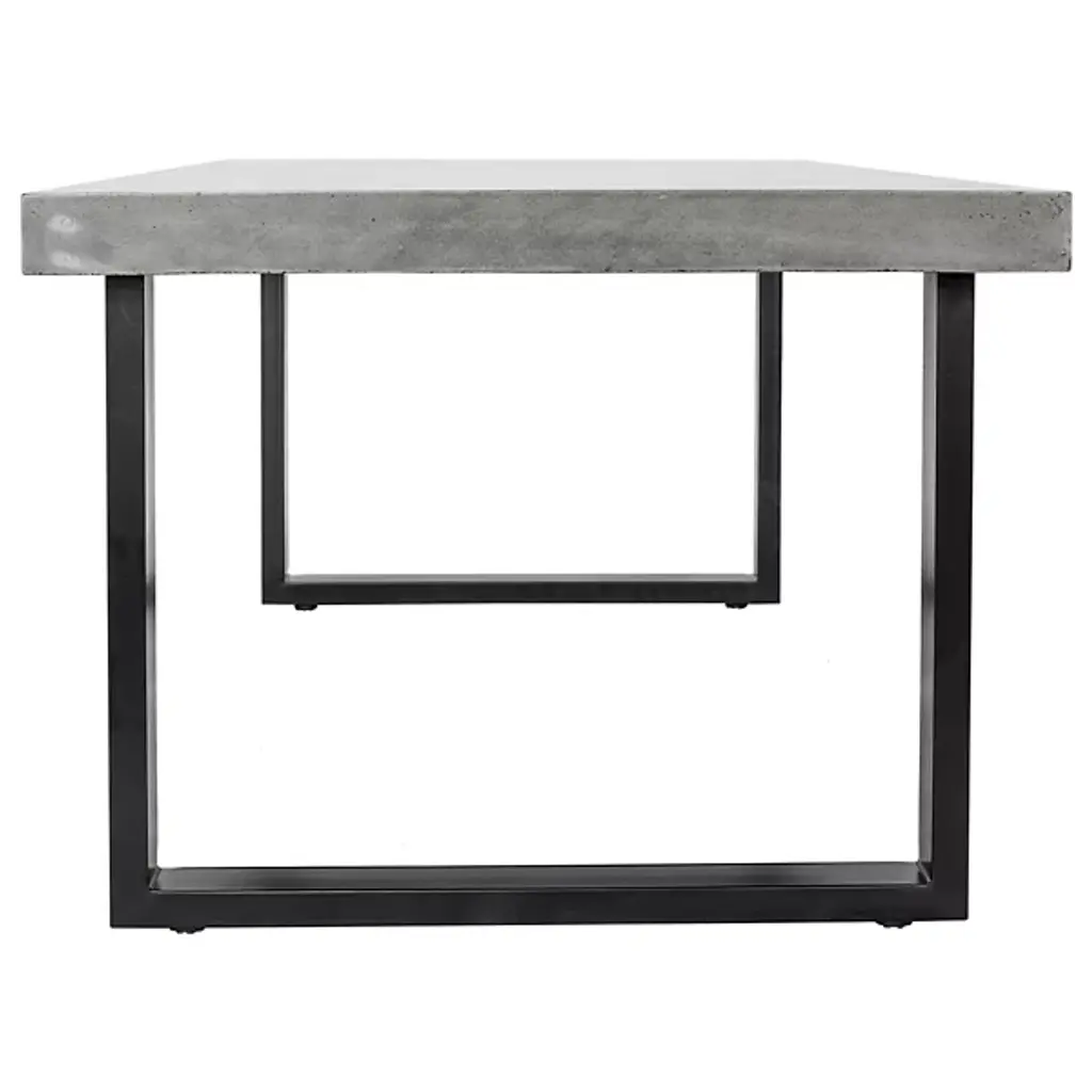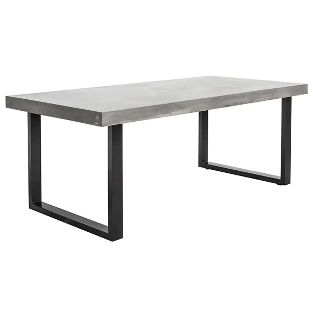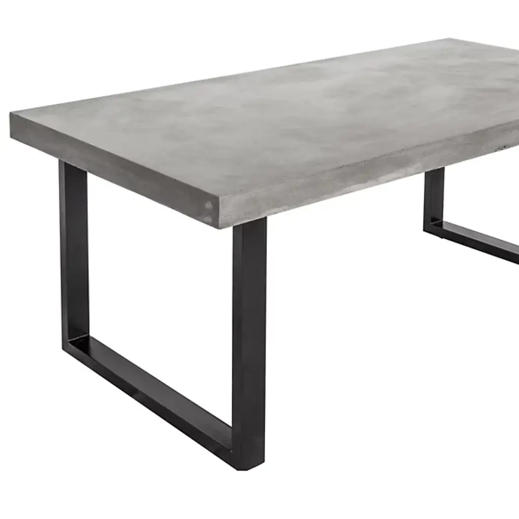 The Crawford Outdoor Dining Table from Huxe pairs concrete and fiber material in a lightweight construction with solid steel legs. The rectangular tabletop accommodates seating for up to six people, while the steel framework ensures stability, working equally well for indoor or outdoor applications, making it suitable for patios, dining rooms, or covered porches. The concrete and fiber blend creates a durable surface that maintains its appearance across various environmental conditions, while providing ample space for dining and gatherings.