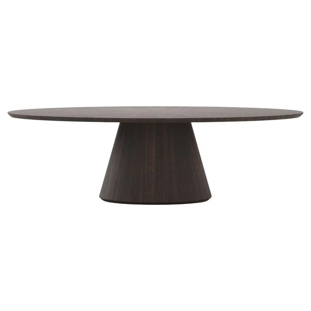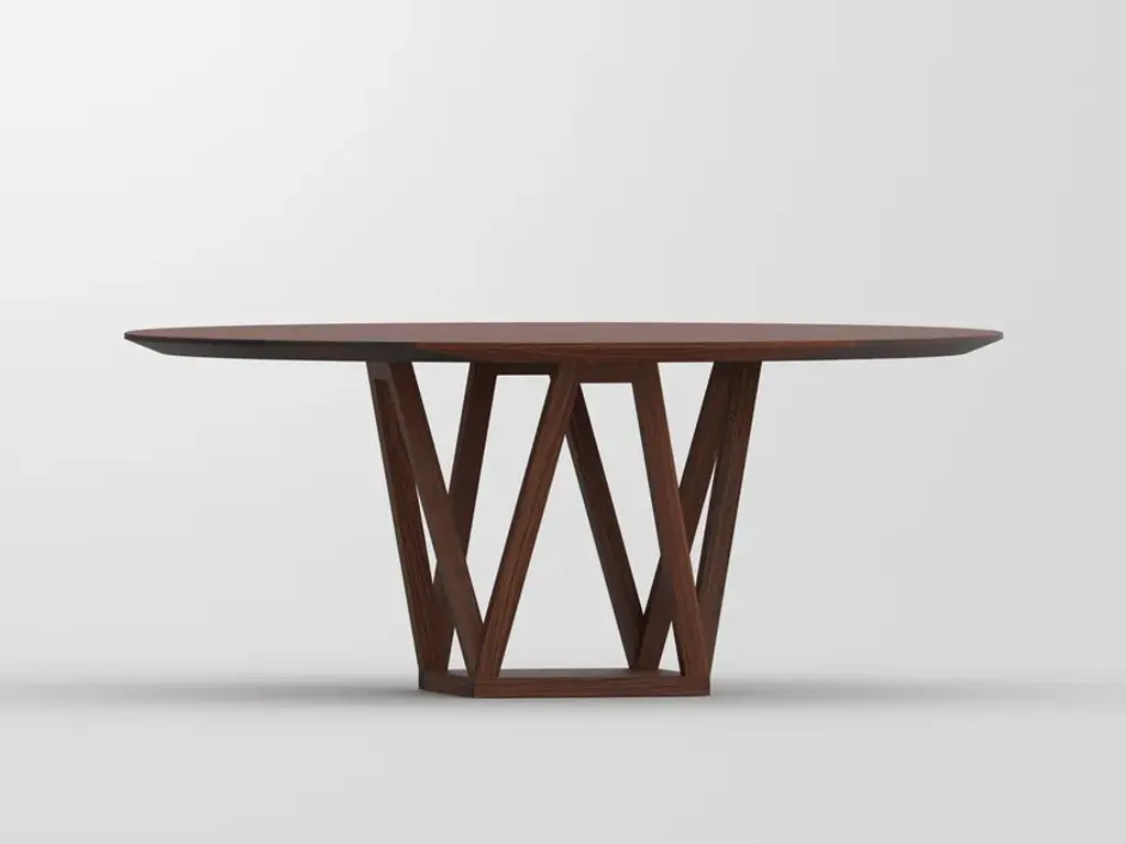 CREO's round solid wood form has a warm undertone and is ideal for a great dining experience with your family and friends. The central pillar with its trapezoid geometry is visually appealing and offers lots of leg room. Through the clear lines, the table conveys plenty of elegance. On the 160 or 180 cm big solid wood table top lays a Lazy Susan turntable with its decorative and functional design.Available in all solid wood types from vitamin design collection: European oak and knotted oak, ash, beech, core beech, American maple, walnut and cherry wood, treated with herbal oil.