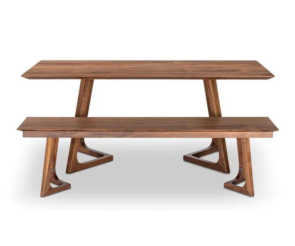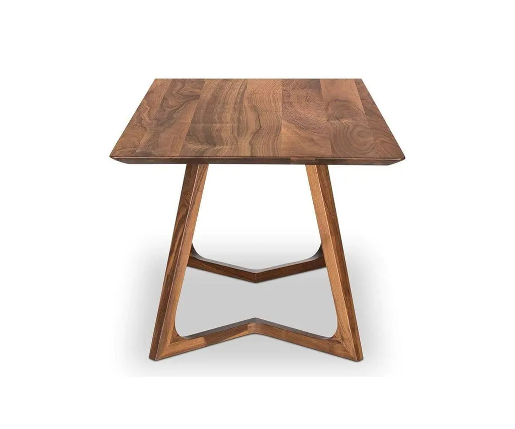 Welcome a mid-century modern touchstone to your dining space. The Cress Rectangle Dining Table features a rich, warm walnut finish, highlighting the beveled edges of the tabletop that flow elegantly to the angled legs. This piece seats six comfortably, so cozy gatherings are encouraged.