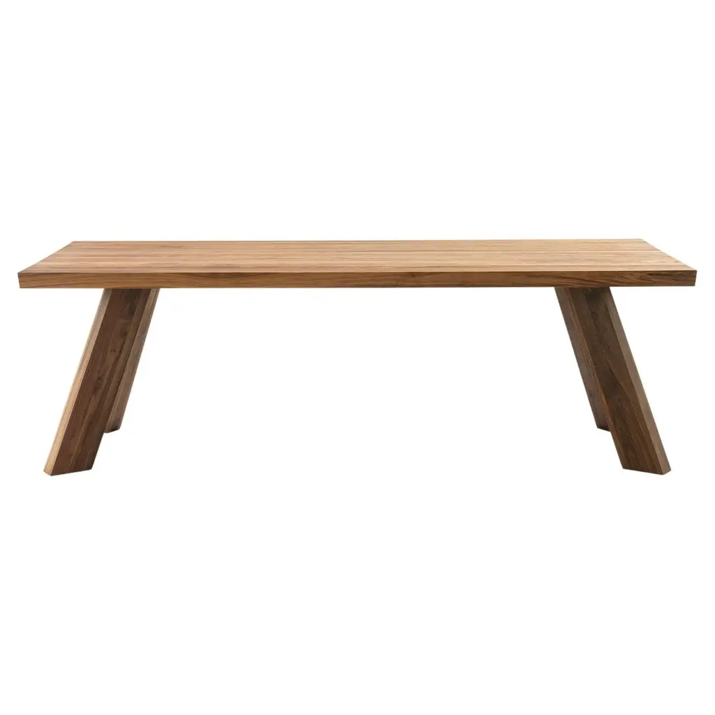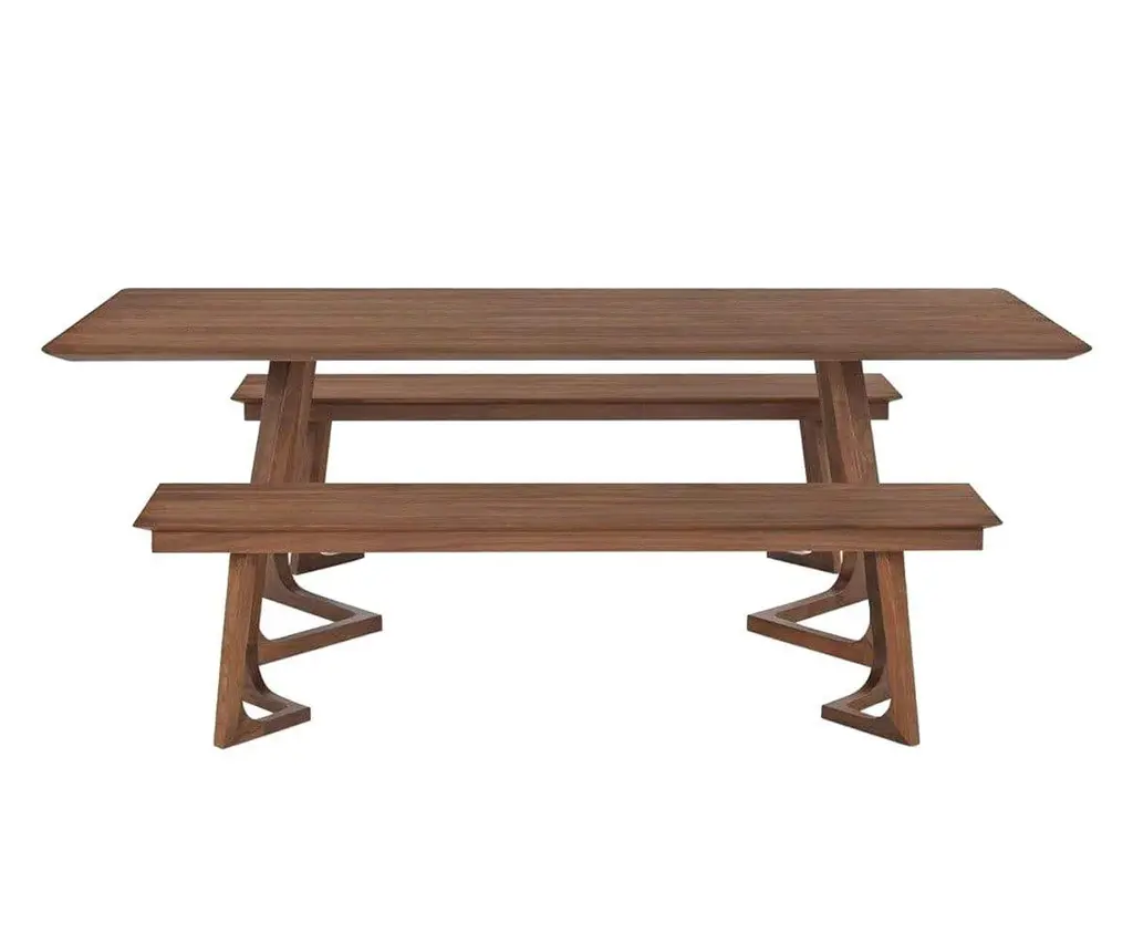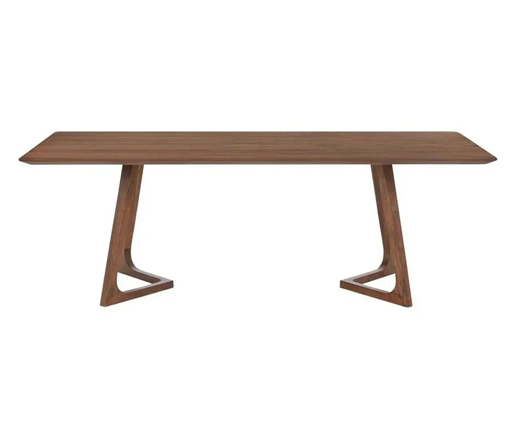 Welcome a mid-century modern touchstone to your dining space. The Cress Rectangle Dining Table features a rich, warm walnut finish, highlighting the beveled edges of the tabletop that flow elegantly to the angled legs. This piece seats eight comfortably, so cozy gatherings are encouraged.