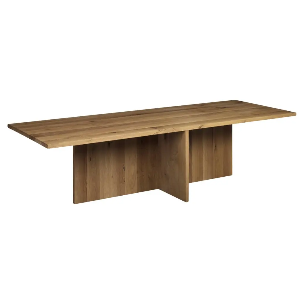 Crooked dining table by Nazara LazaroDimensions: H 75 cm x W 200 cm x D 100 cmMaterials: Massive oak with oil wax surfaceAlso available in natural massive oak, walnut, and white lacquered wood.The Crooked collection is an ongoing series of asymmetric and angular furniture pieces. It is based on a very simple concept: the absence of 90° angles and symmetries. Every piece is made to order, using hand glued timber from selected oak slabs, planed and finished with hard wax oil. The design remains as pure as possible by keeping all the joins hidden. The use of massive oak gives a very premium finish and provides a warm contrast to the angular lines.