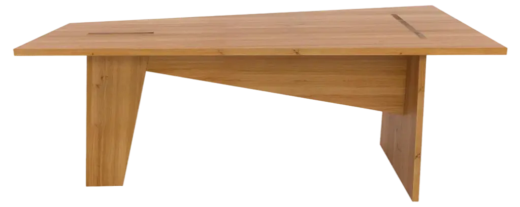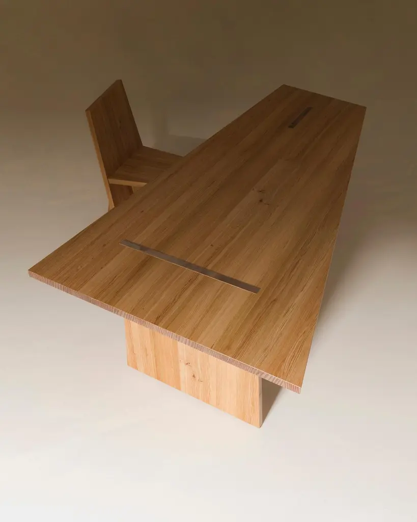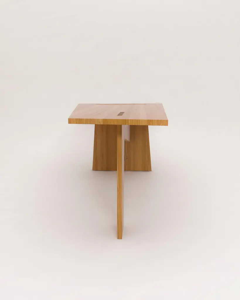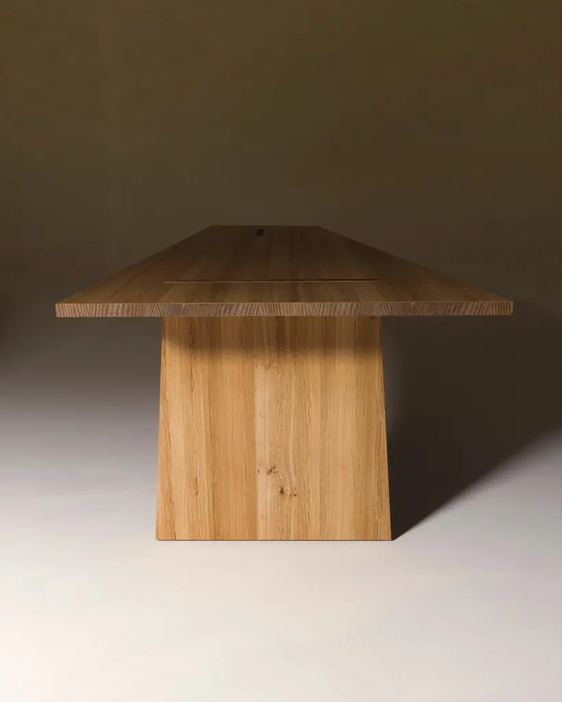 Crooked dining table by Nazara Lázaro.Dimensions: H 75 x W 200 x D 100 cm.Materials: Massive oak with oil wax surface.All pieces are available in natural massive oak, walnut and white lacquered wood.Additional sizes, woods and finishes are available on request.Nazara LázaroNazara Lázaro studied Interior Design at the Istituto Europeo di Design in Madrid and completed courses in Graphic Design, Web Design and Eco-building.After graduating, she traveled to Japan, where she stayed for almost two years. During this time she learned about Japanese woodwork, architecture and exhibition design.In 2014 she moved to Berlin and in 2016 she joined the team of the furniture brand TAVAR? as the creative director and product designer.She currently works as freelance interior and product designer, 3D artist and creative director.