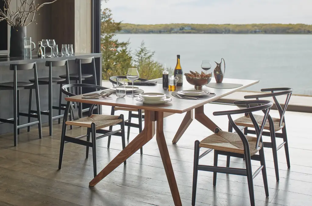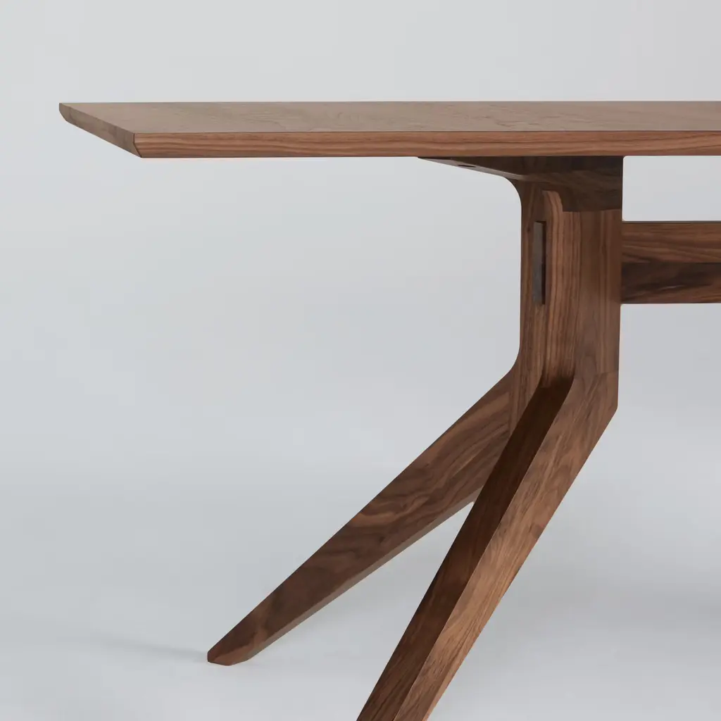 Since graduating from London's Kingston Polytechnic in 1979, Matthew Hilton has built a following for his innovative, gorgeously crafted furniture, with pieces held in the permanent collections of London's Geffrye and Victoria & Albert Museums, among others. His Cross Table (2005) features a splayed-leg base, which maximizes user legroom while providing impressive stability. The fixed (meaning non-expanding) tabletop is finished with a solid wood chamfered edge for comfort and durability. Made in Lithuania.
