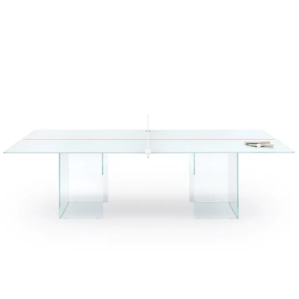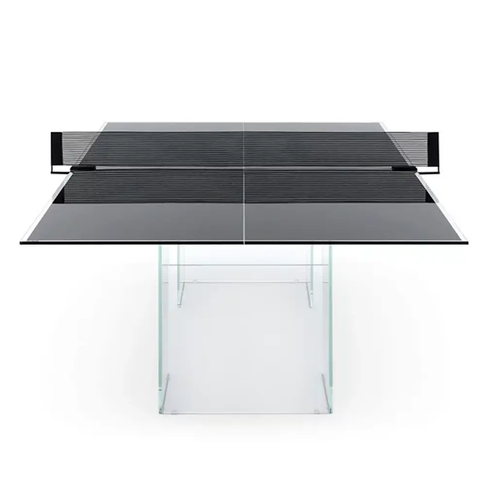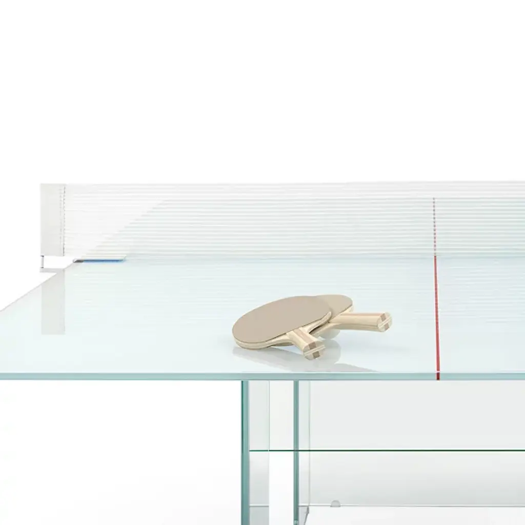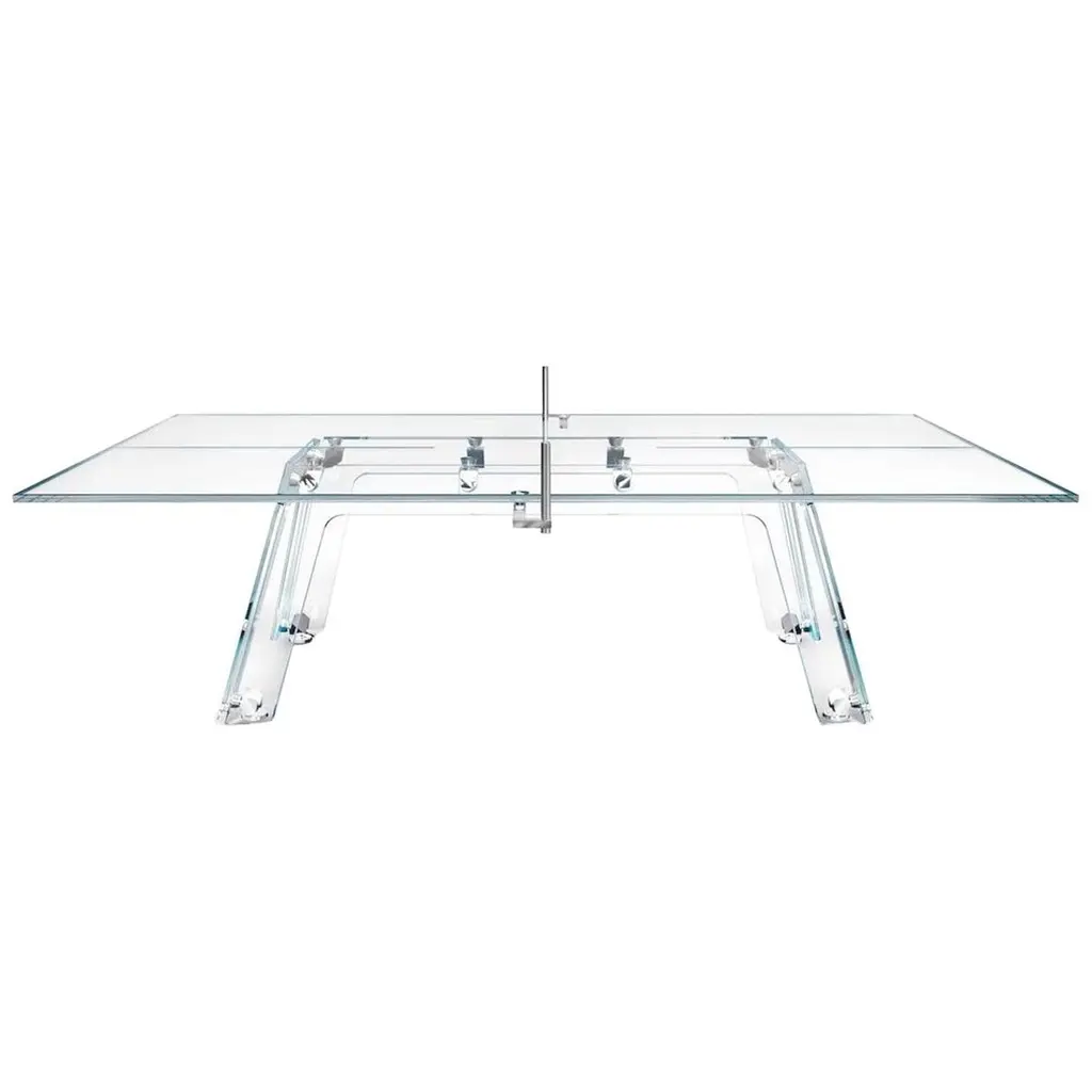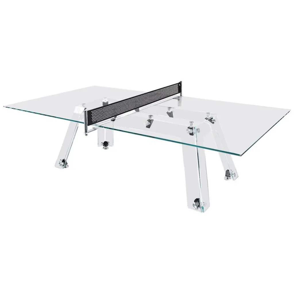 Add a gorgeous glam to living spaces with the Crystal Ping Pong Table from Fas Pendezza. A cutting-edge contemporary design by Basaglia + Rota Nodari made in Italy, it uses angular, bracket-style bases of clear crystal to elevate a rectangular tabletop of contrasting, translucent crystal that acts as the playing surface. A removable net means the table can be used for dining and group gatherings, while included balls and rackets mean you’re ready to play when the table arrives with a minimum of prep. The sharp corners and gorgeous crystal give the table the impression of luxurious jewelry as it ornaments its surroundings.