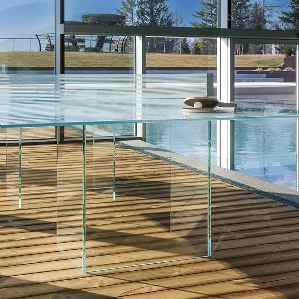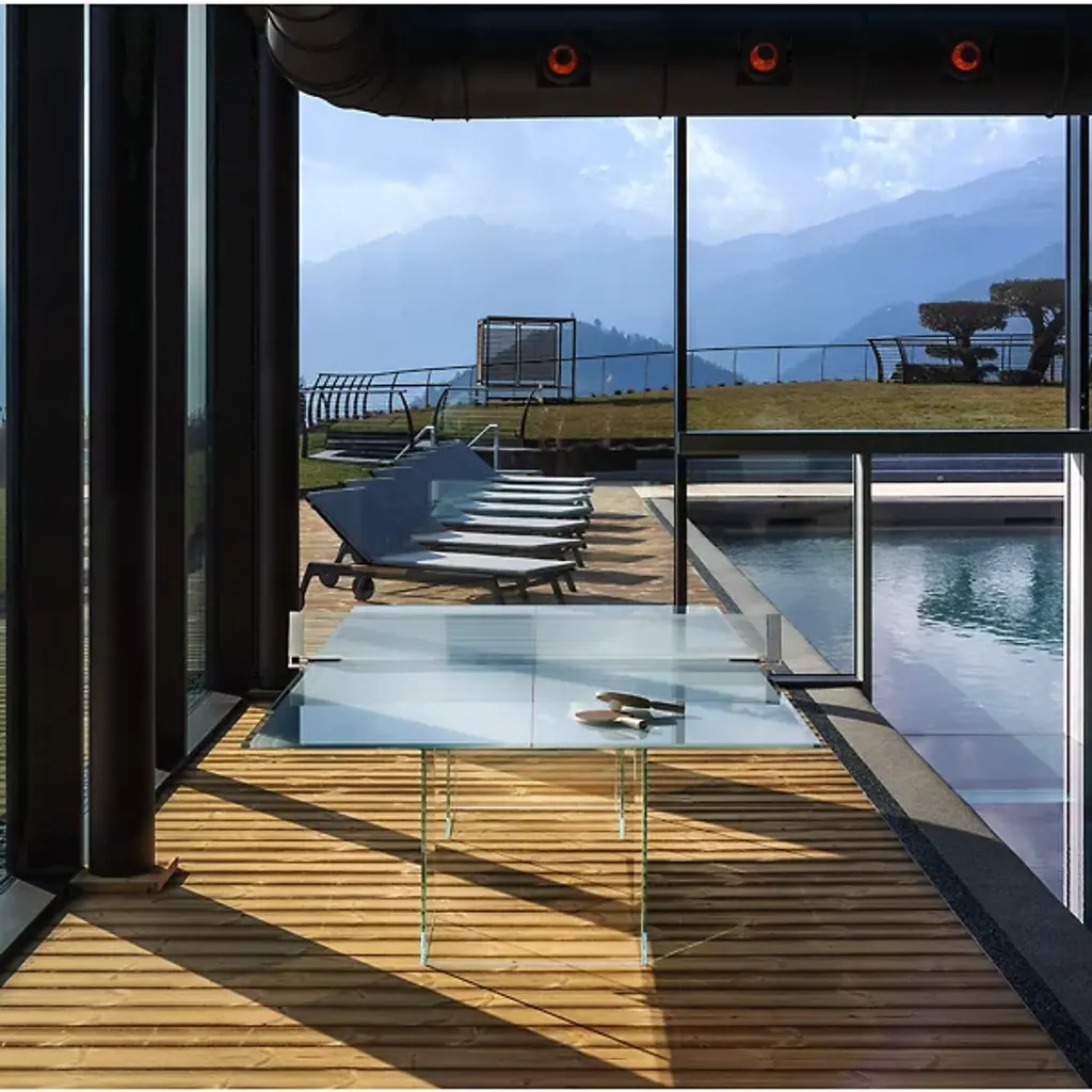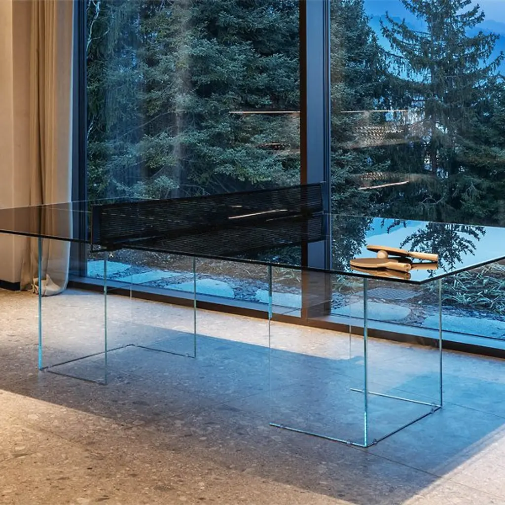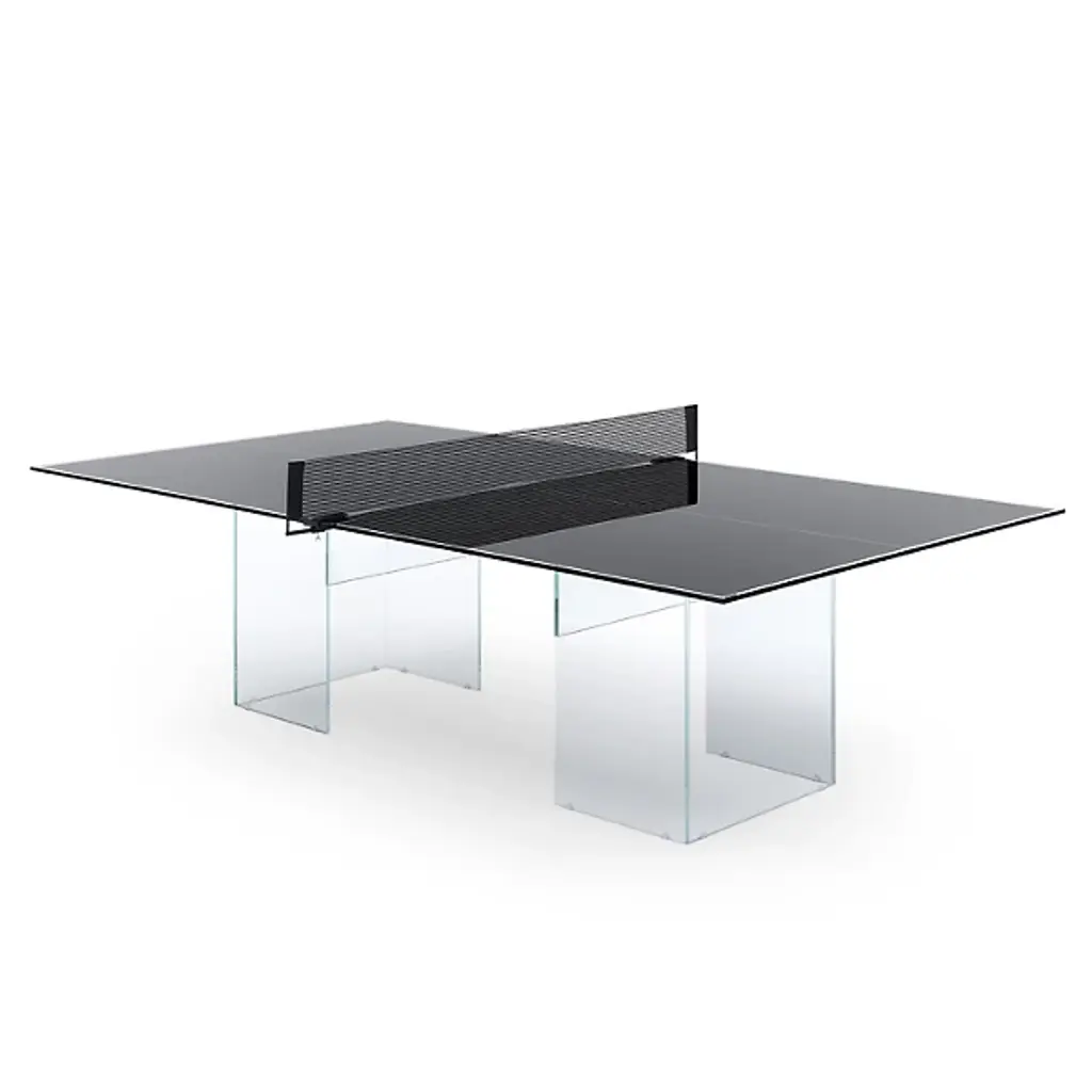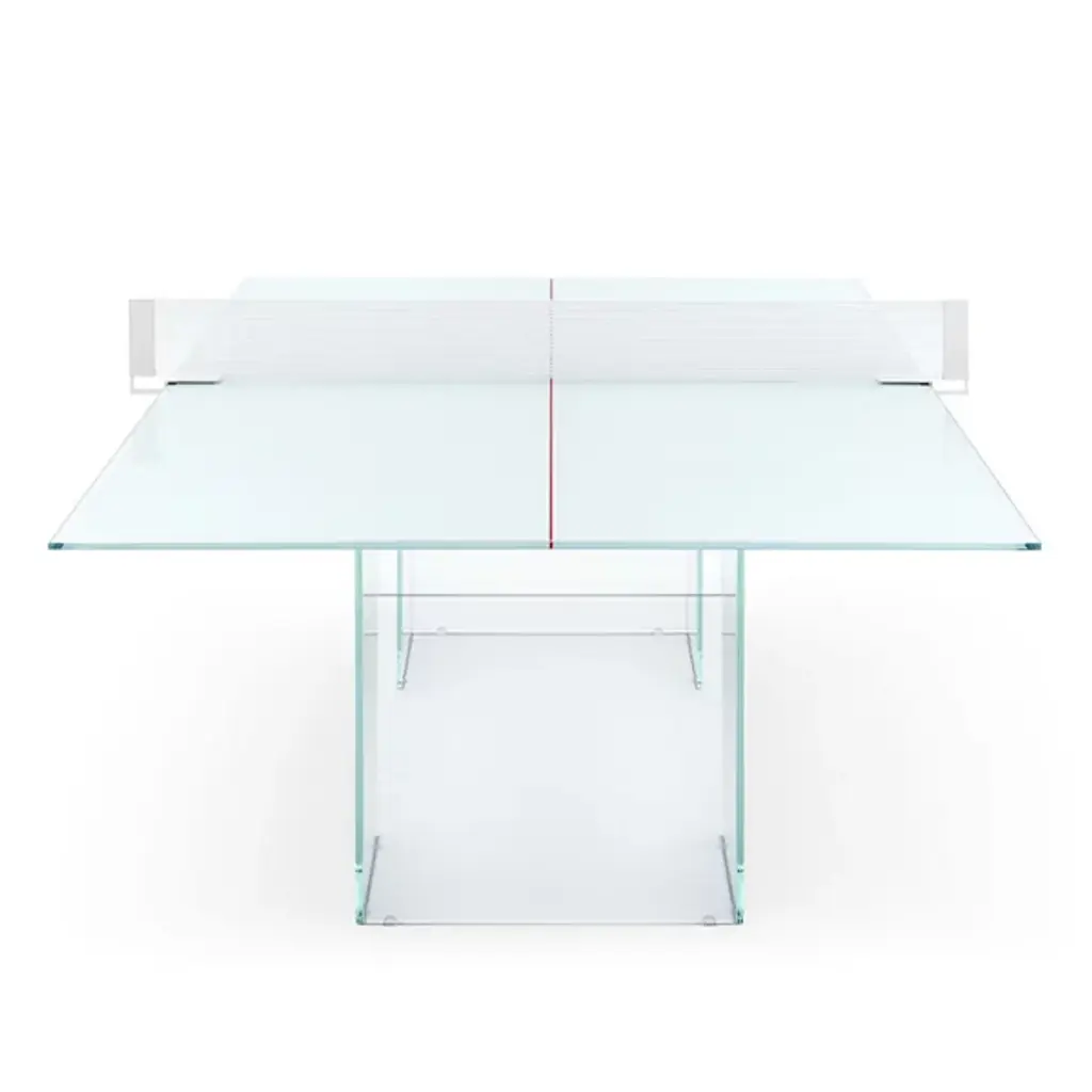 Add a gorgeous glam to living spaces with the Crystal Ping Pong Table from Fas Pendezza. A cutting-edge contemporary design by Basaglia + Rota Nodari made in Italy, it uses angular, bracket-style bases of clear crystal to elevate a rectangular tabletop of contrasting, translucent crystal that acts as the playing surface. A removable net means the table can be used for dining and group gatherings, while included balls and rackets mean you’re ready to play when the table arrives with a minimum of prep. The sharp corners and gorgeous crystal give the table the impression of luxurious jewelry as it ornaments its surroundings.