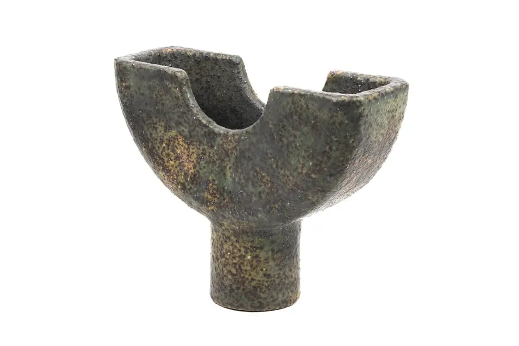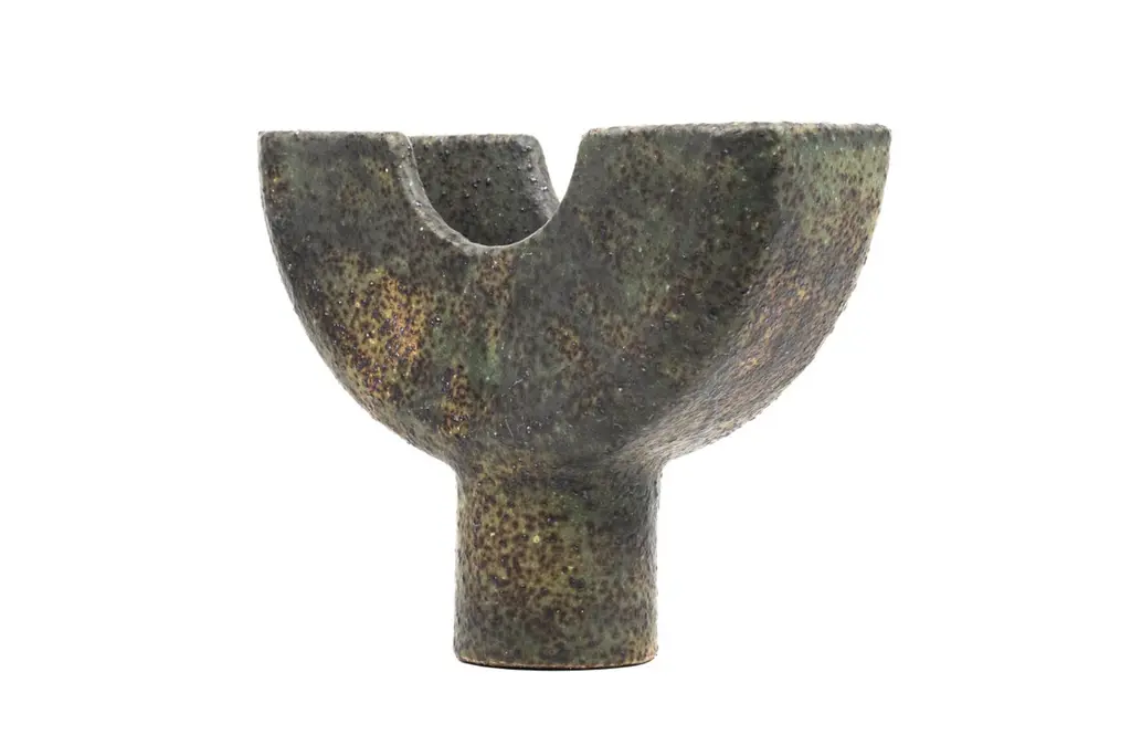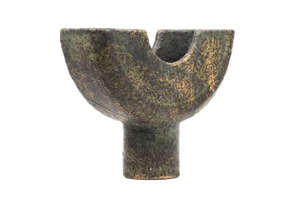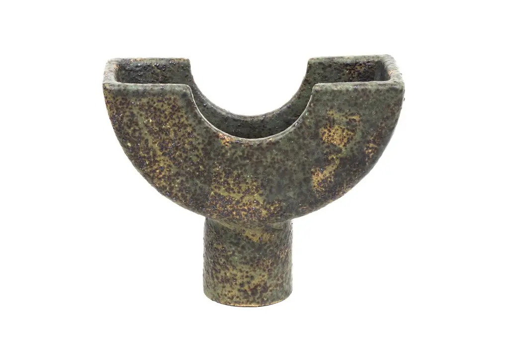 Cu vessel by Studio CúzeDimensions: D 8 x W 23 x H 19.5 cmMaterials: ceramic, copperThe Cu Vessel is a handmade piece for holding and collecting incense sticks. The piece owes its unique colour to the use of copper, which is named “Cu” in the periodic table. To the touch, it creates a regular shape that contrasts perfectly with the wonderfully rough surface. The shape itself is artfully designed and can also be displayed alone or as a decorative element. In general, the Cu Vessel can of course also be used perfectly for small treats. The Cu Vessel was handmade by Yasuhiro Cúze in Berlin. Each piece is unique.Studio CúzeI am a Berlin based Japanese ceramic artist. I completed the Design and Lab courses at Ishoken, and Tajimi City Pottery Design and Technical Centre.When I create, I do not think my objects are the leading part in the presentation of a meal. Rather the most important focus lies in the food, the artistic cuisine and its power to draw people together to enjoy it:it is the social aspect, rather than the product itself, that drives me to design. Therefore, I refers to my works as supporting actors; objects that exist naturally in our spatial environment.Many of my products are purposefully made large because I want people to come together using my products to join in the atmosphere and community of dining.