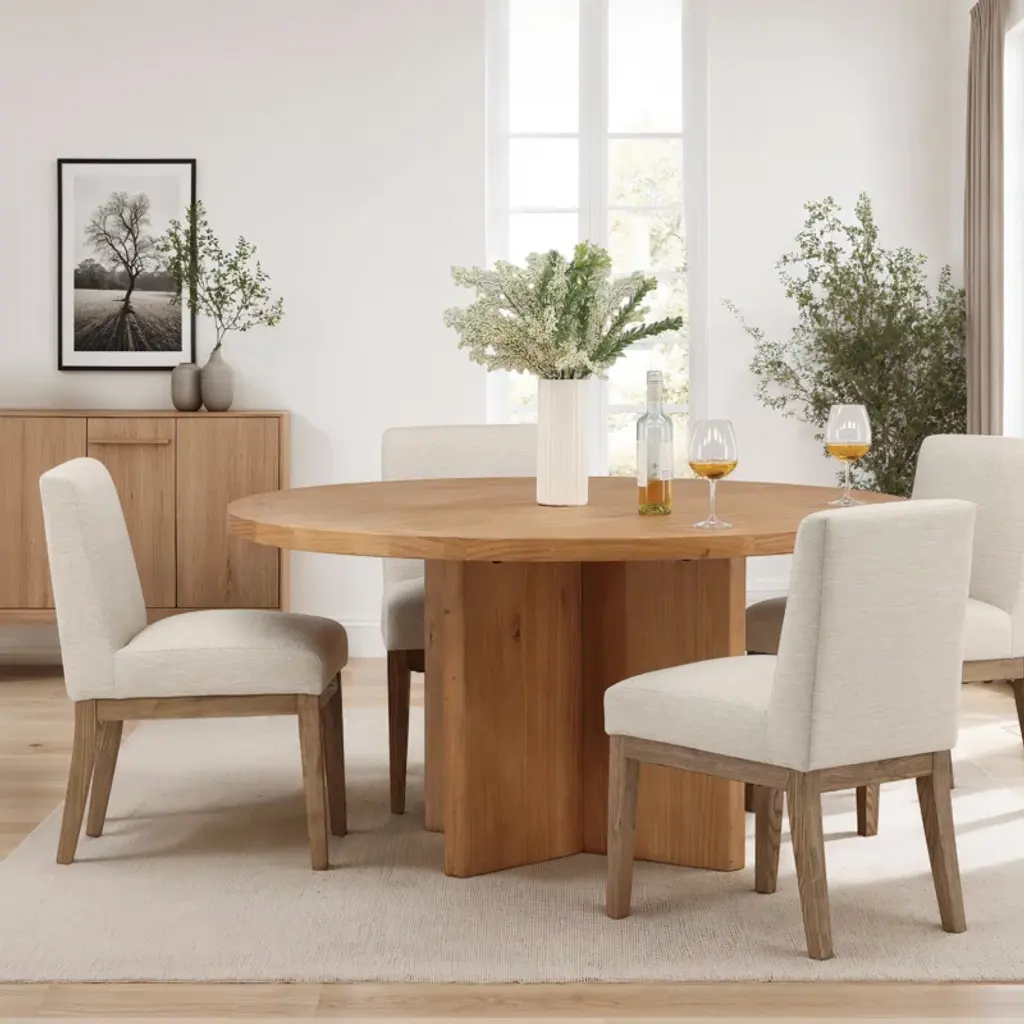 The Curata round dining table combines the mountain modern finish on top with a plated black nickel base. Create a curated chic modern look with an eclectic mix of sophisticated materials and finishes in the Curata collection. Curata, meaning "curated" in Italian, mixes materials like black nickel, stainless brushed brass, and marble with three distinct rustic modern finishes for a simple, yet urbane design. Inspired by timeless shapes and chic materials, Curata exudes a "less" is more" feel by spotlighting the design of each piece and giving precise attention to detail.