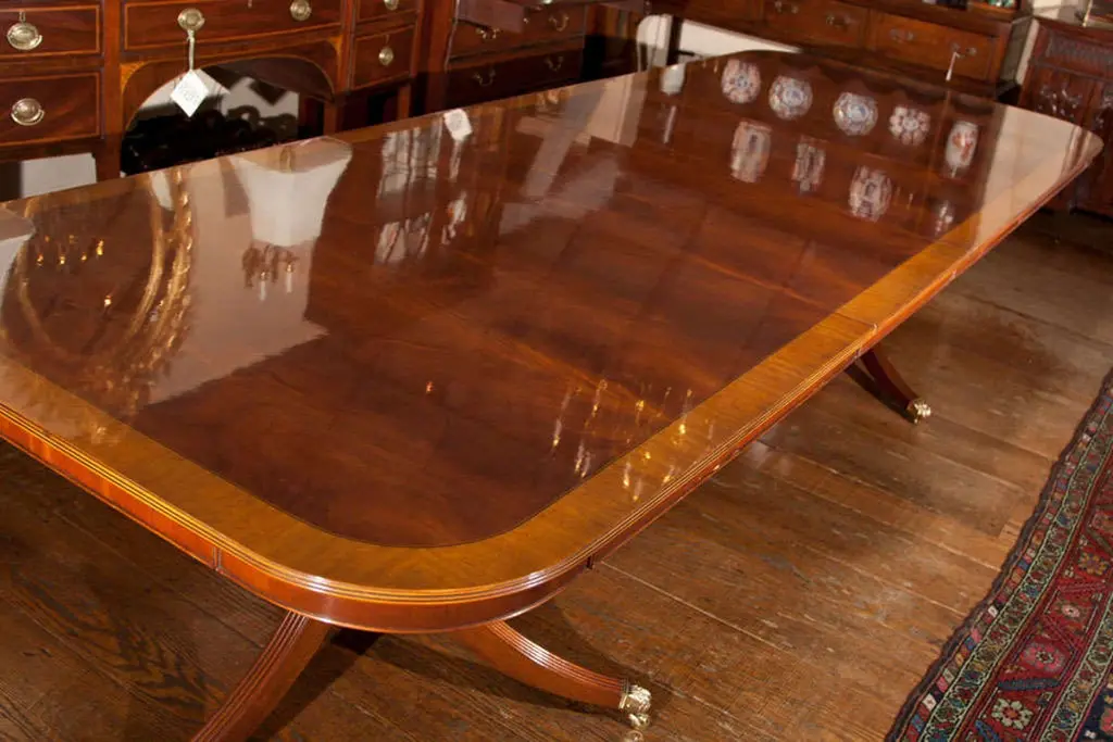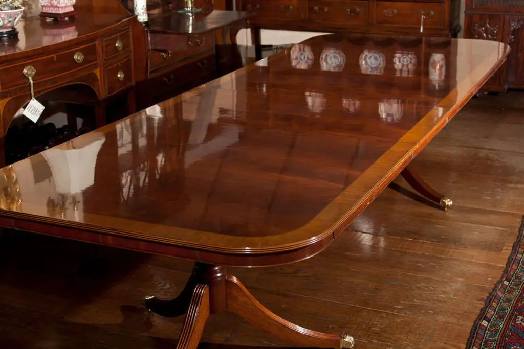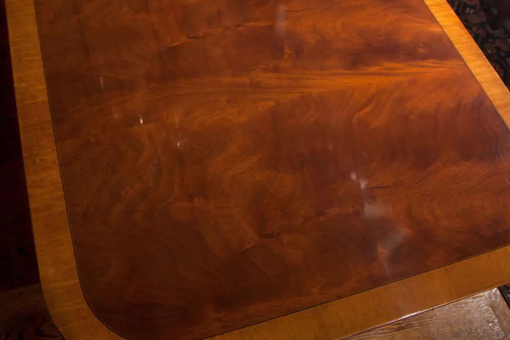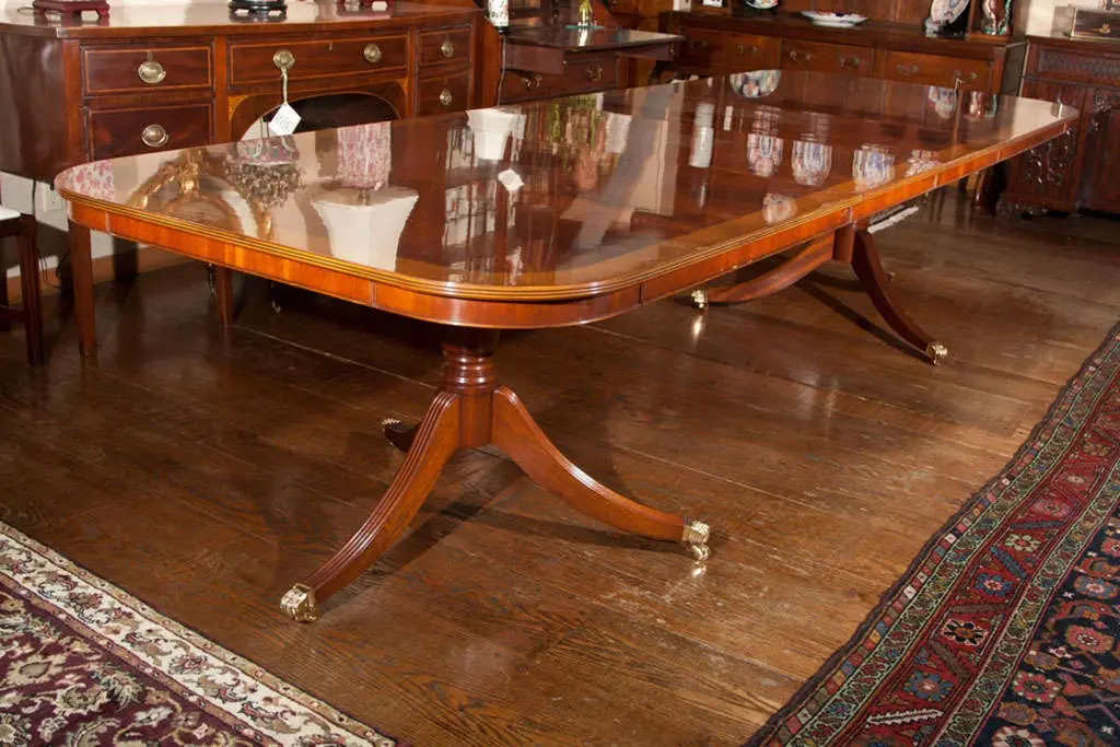 Custom English Flame Mahogany Double Pedestal Dining Table