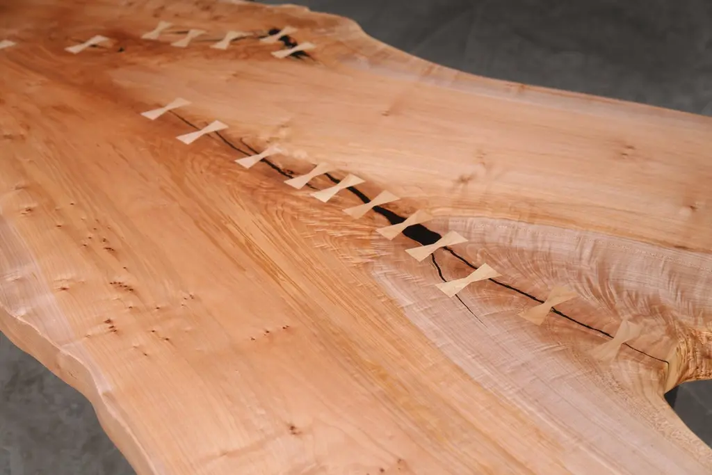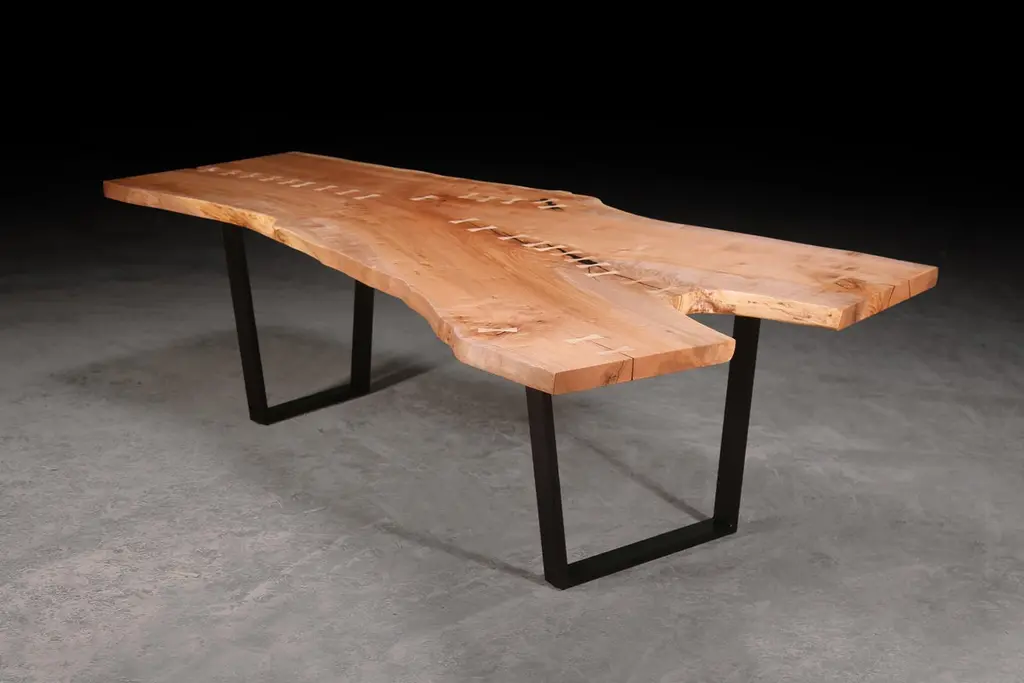 Custom Live Edge, Single Slab Maple Table With Bowtie Inlay, Metal Base
