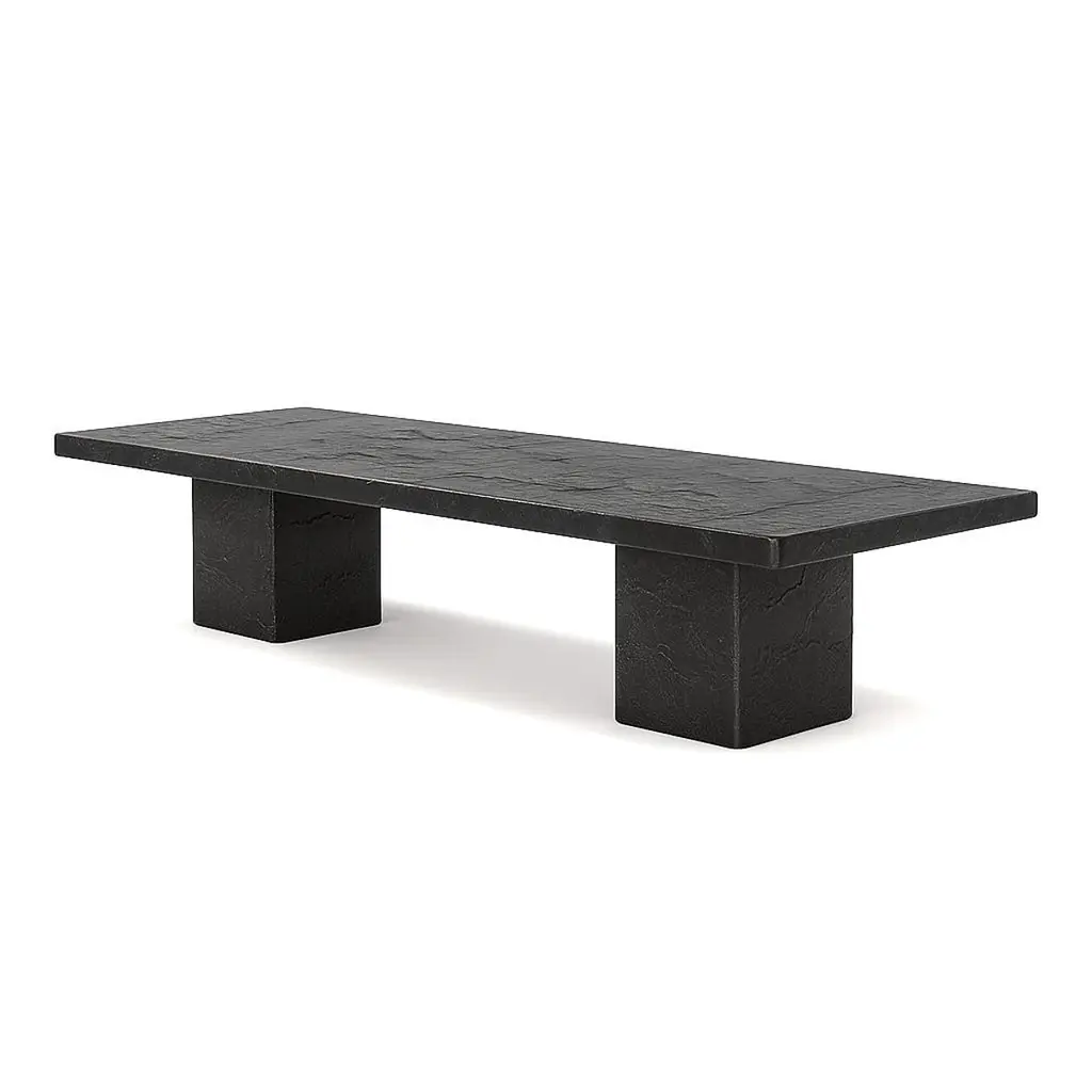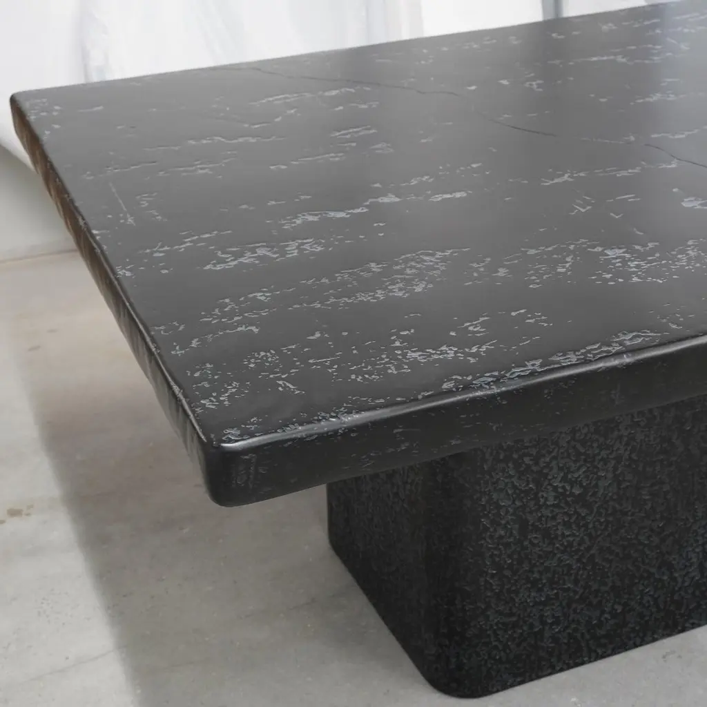 This outdoor dining table is a striking blend of modern design and robust form. Its straight lines, raw look, and white slate-textured finish create a sophisticated centerpiece for any outdoor space.Specifications:Table crafted entirely of solid fortified resin. Dimensions: 130" W x 51.1" D x 29.5".Customization:The size of this table is customizable and it comes with 3 pedestals for extra wide custom sizes.Table is avaiable in a choice of artistic stone finishes upon request.The table can be produced with 3 pedestals for extra wide custom size. This table can be produced in any RAL color, as well as several standard colors that we offer. We do our best to expedite production and to ship and deliver product within the listed lead time, however current lead times might be longer due to global shipping backlog and delays. These delays are out of our control and cannot be a reason to cancel an order.