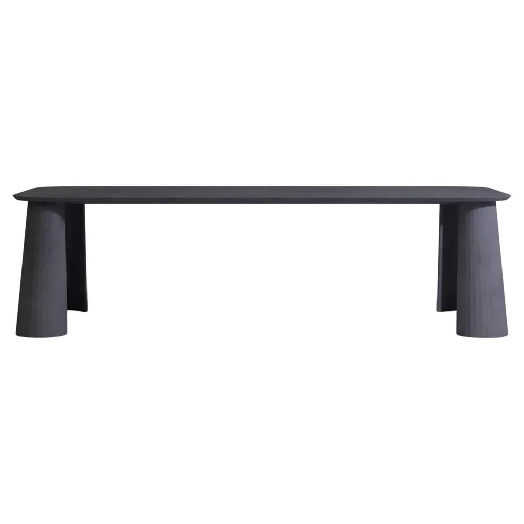 This outdoor dining table is a striking blend of modern design and robust form. Its straight lines, raw look, and slate-textured finish in dark tones create a sophisticated centerpiece for any outdoor space.Dimensions: 130" W x 51.1" D x 29.5".The size of this table is customizable. The table can be produced with 3 pedestals for extra wide custom size. This table can be produced in any RAL color, as well as several standard colors that we offer. We do our best to expedite production and to ship and deliver product within the listed lead time, however current lead times might be longer due to global shipping backlog and delays. These delays are out of our control and cannot be a reason to cancel an order.