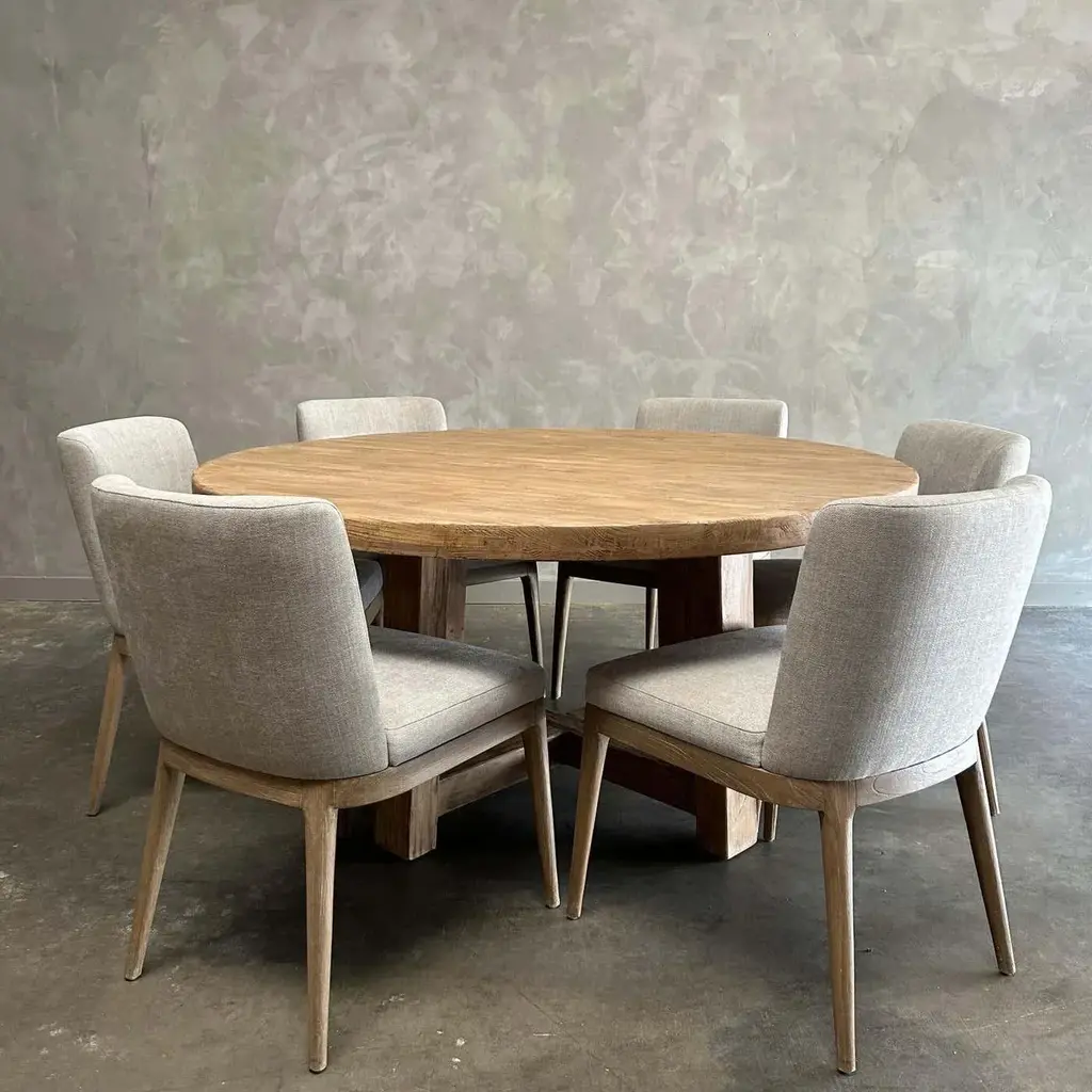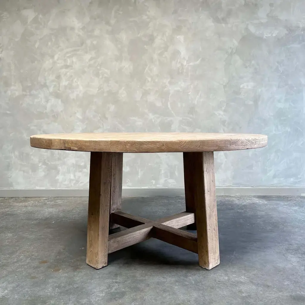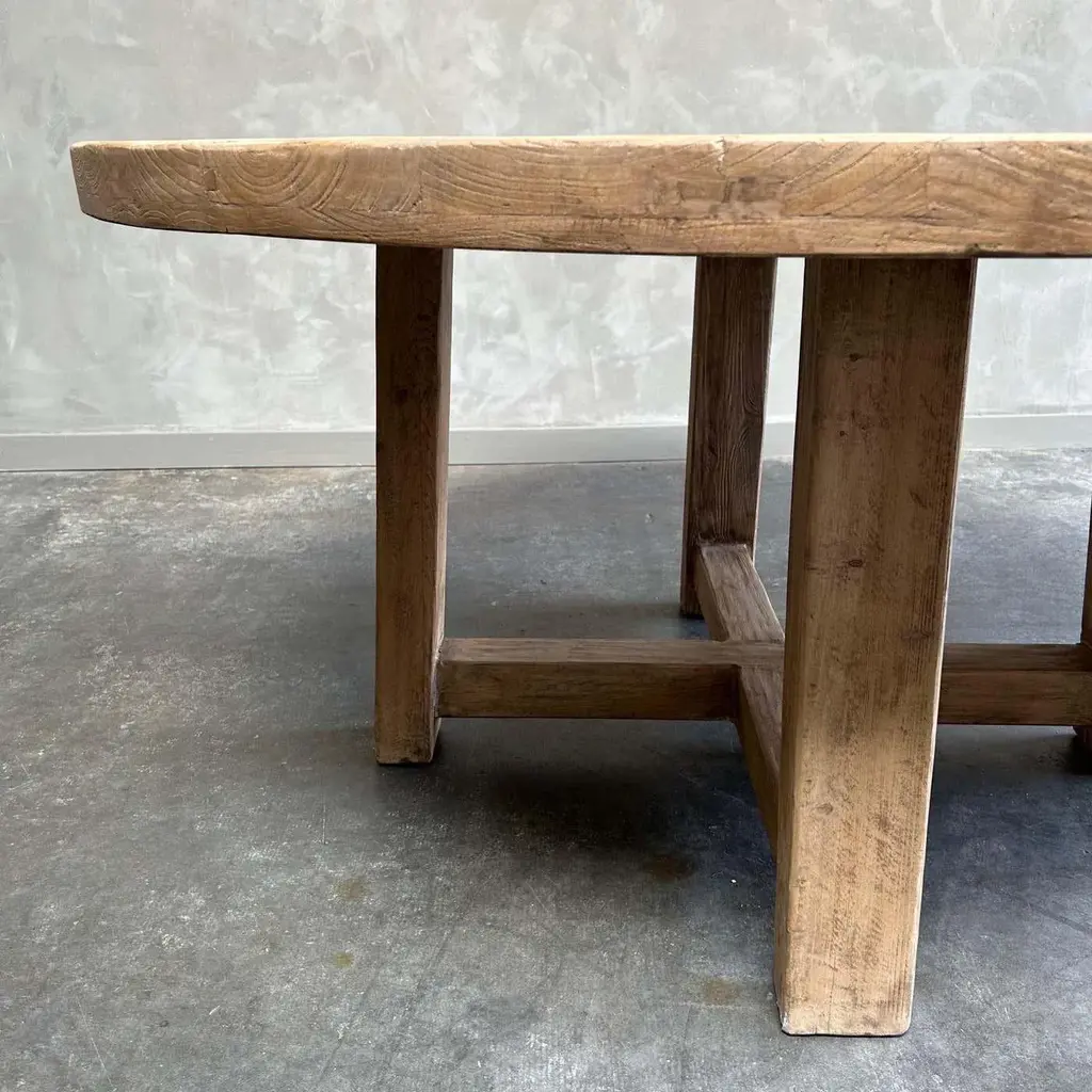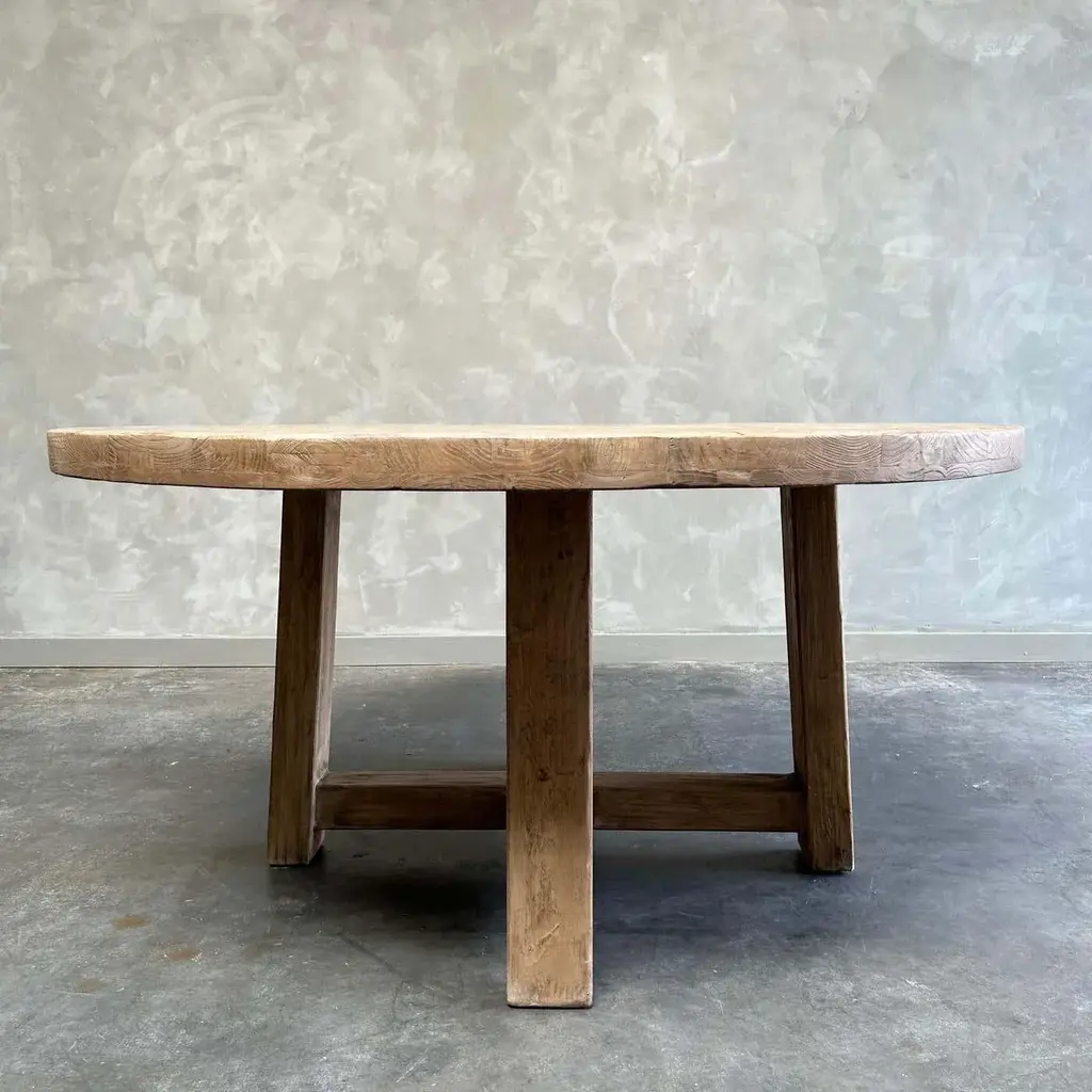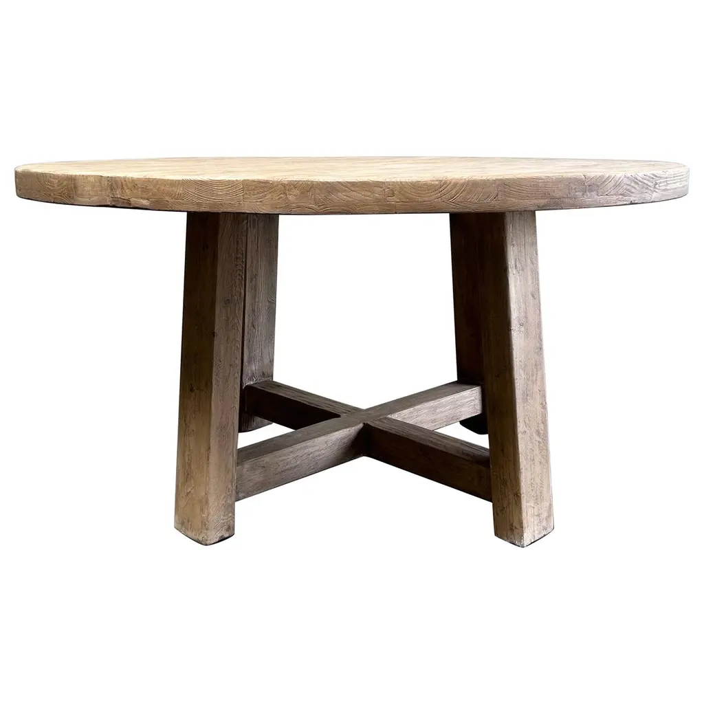 Custom Made Reclaimed Elm Wood Round Dining Table
