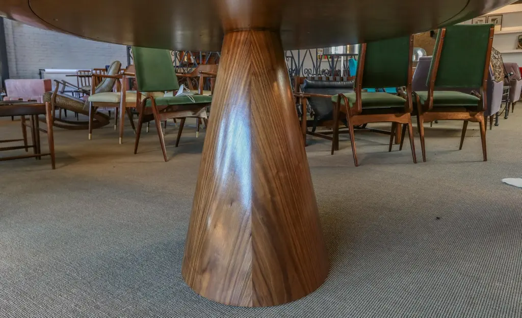 Custom Midcentury Style Walnut Oval Dining Table With Glass Top By Adesso