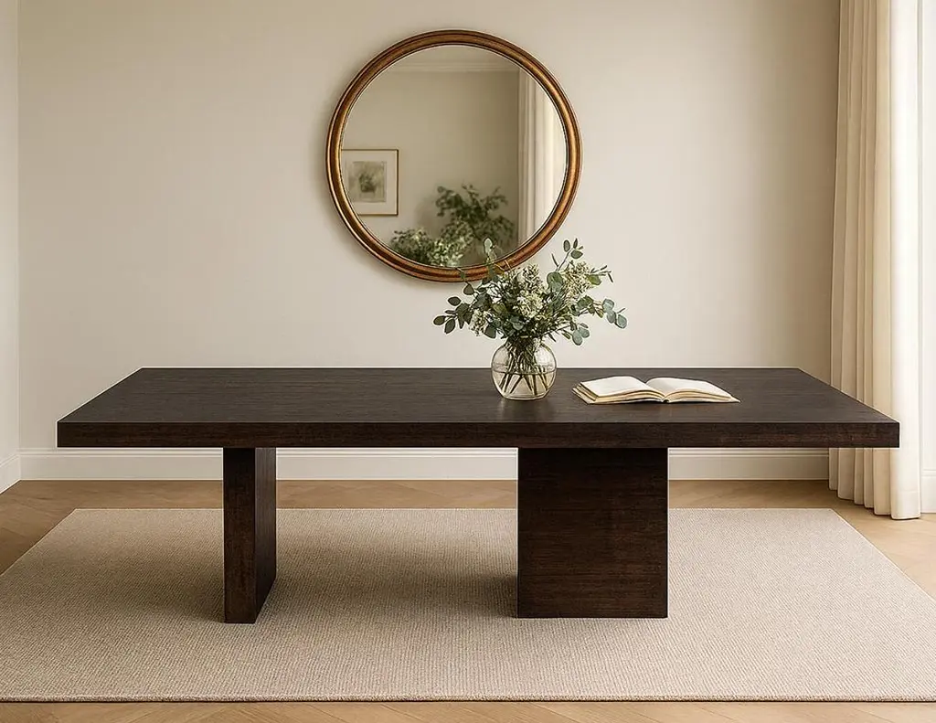 Custom Modern Walnut Dining Table With Column Pedestals By Carrocel
