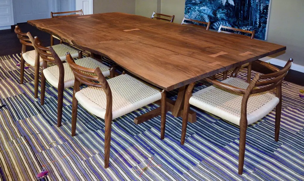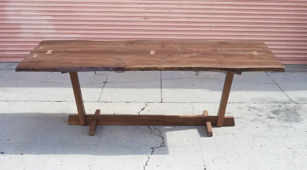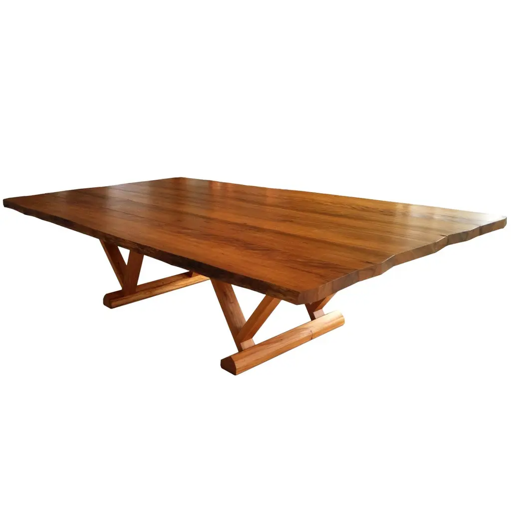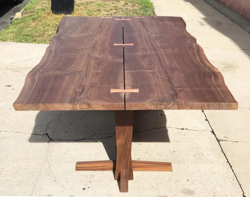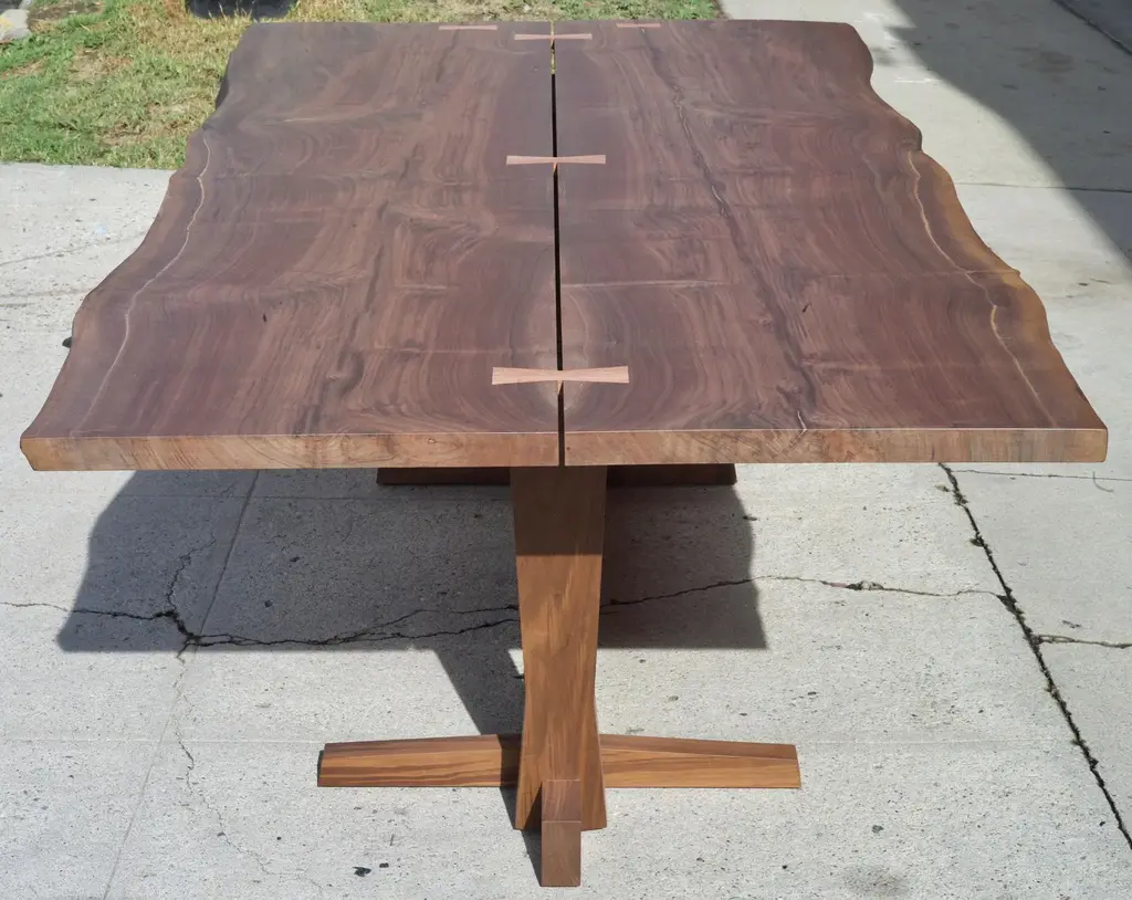 This George Nakashima inspired dining table is seen here in 102" x 42" x 30" H We use only traditional carpentry techniques, no nails or metal fasteners of any kind. Just mortise and tenon construction reinforced with hand-cut wooden dowels.