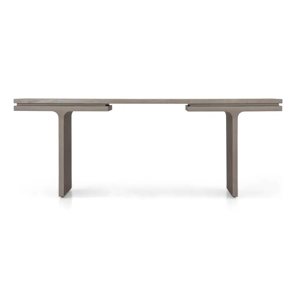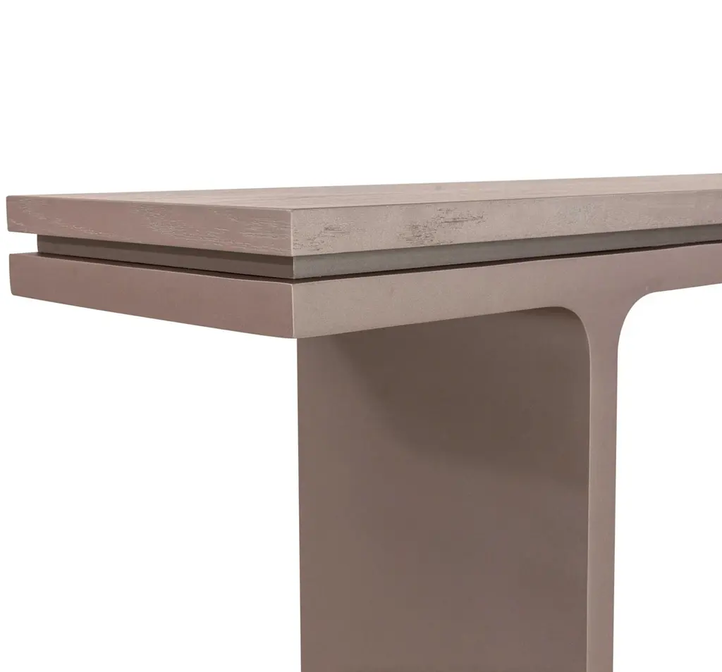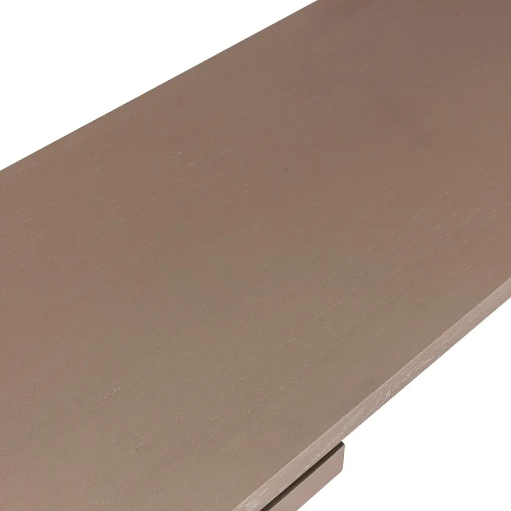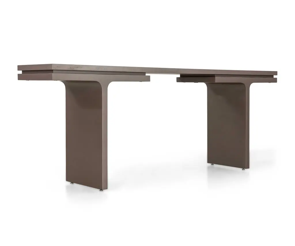 A Square console table designed by Sérgio Batista for Uultis with chocolate finish and 78-Inch top. Redefine your living space with the Square console table, a harmonious blend of sleek design and practical functionality. Featuring a 78-inch top with a rich chocolate finish, this table provides an expansive surface ideal for styling with decorative accents, family photos, or everyday essentials. The clean, modern lines and minimalist silhouette of the Square console table bring understated elegance to any space, making it a versatile choice for contemporary and transitional interiors alike.Crafted from high-quality MDF with a sturdy metallic structure, the table is designed for durability and sustainability, reflecting a commitment to eco-conscious furniture production. Whether used as a statement piece in an entryway, a media console in a living room, or a buffet surface in a dining area, its adaptable design elevates the functionality and style of your home.The console is outfitted with height-adjustable feet for seamless integration on any floor type, ensuring stability and convenience. Despite its generous dimensions, the table’s light aesthetic makes it an unobtrusive addition to your decor. Perfect for both residential and commercial spaces, it is easy to assemble, with step-by-step instructions included for a hassle-free setup.Create a welcoming atmosphere in your home with this multifunctional console table. Its sophisticated chocolate finish complements neutral palettes or adds warmth to bolder interior designs, while its versatile structure makes it suitable for showcasing art, books, or lighting accents. The Square console table strikes the perfect balance between functionality and refined style, making it an indispensable piece for any modern home.