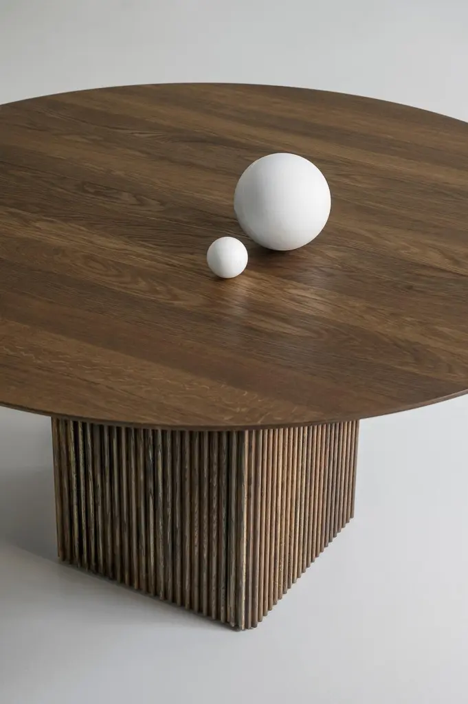 'TEN' Round Table designed by Christian Troels and Jacob Plejdrup for DK3 Handmade in Denmark.Solid wood tabletop and legsModel shown on main picture:Shape: RoundWood: Smoked OakTabletop Diameter: 140 Table height: 72 cmTabletop thickness: 3 cmBase dimension: 47 x 47 cmTable height: 72 or 74 cmBase dimension (depending on the tabletop size):– 42 x 42 cm– 47 x 47 cmWood :– Oak– Smoked oak– Walnut. Price may vary according to the wood type and size. --TEN TABLEDesign by Christian Troels & Jacob Plejdrup, 2019dk3 was among the first brands to introduce the plank table to the Scandinavian market back in 2009, and with the aim to take this design heritage to the next level, dk3 founder Jacob Plejdrup has developed the anniversary table TEN TABLE in cooperation with Danish designer Christian Troels. The designs of Christian Troels are characterized by a great level of details and craftsmanship accuracy, which, in the TEN TABLE, is perfectly merged with Jacob Plejdrup's basic ideas on large dining tables, such as highlighting the natural beauty of wood in a minimalistic way.