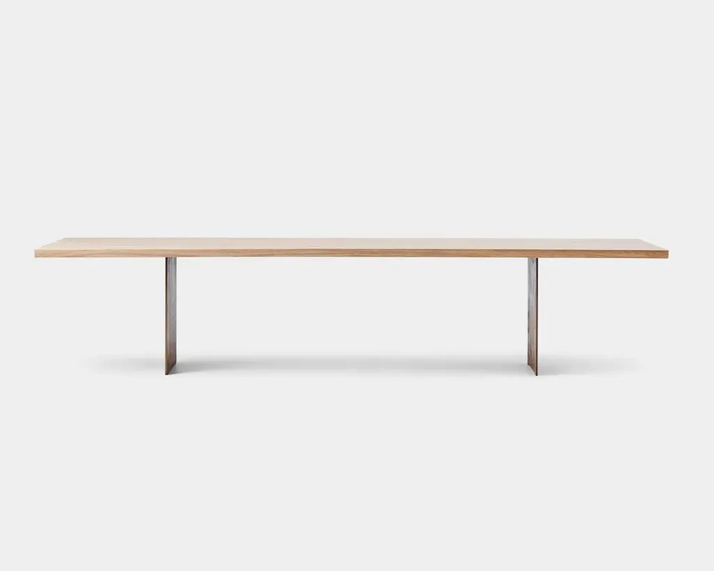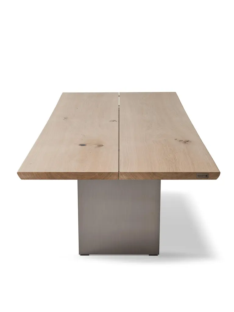 'Tree' Dining Table designed Jacob Plejdrup for DK3Solid wood tabletop and steel legsHandmade in DenmarkModel shown on main picture:Wood: OakDimensions: 270 cmTable height: 72 cmTable top thickness : 4 cmTable height: 72 or 74 cmTabletop dimension:– 200 x 100 cm– 240 x 100 cm– 270 x 100 cm– 300 x 100 cmWood :– Oak– Smoked oak– WalnutSteel legs:– Clear lacquered steel– Black powder coated steel– Bronze.-----The TREE TABLE is a perfectly balanced natural design. On top of the simple steel construction lie solid wooden planks shaped by nature and crafted by the industry's most skilled hands. The table combines true craftsmanship and innovative engineering, and the result is visually striking.In oak, the TREE TABLE is always made of two whole planks taken from the same tree trunk. Each plank has its own unique form and structure containing different natural characteristics like knots and small cracks, and the natural edges are gently sanded by hand. Each TREE TABLE is individually numbered, and a discrete plate on the table edge testifies the originality of the table.