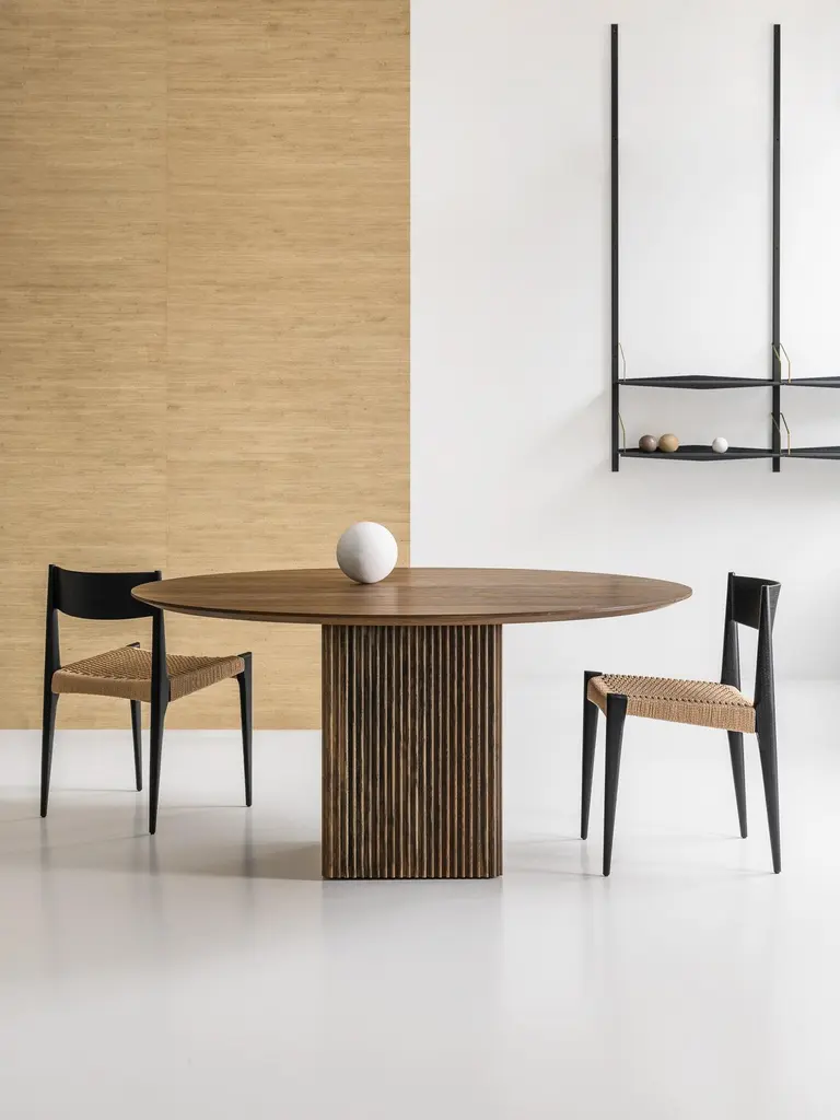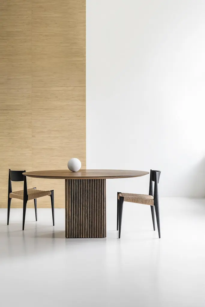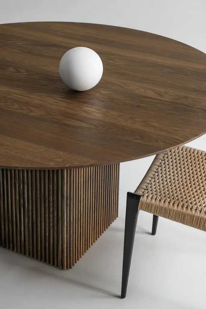'TEN' Round Table designed by Christian Troels and Jacob Plejdrup for DK3 Handmade in Denmark.Solid wood tabletop and legsModel shown on main picture:Shape: RoundWood: Smoked OakTabletop Diameter: 130 Table height: 72 cmTabletop thickness: 3 cmBase dimension: 42 x 42 cmWood :– Oak– Smoked oak– Walnut. Price may vary according to the wood type and size. --TEN TABLEDesign by Christian Troels & Jacob Plejdrup, 2019dk3 was among the first brands to introduce the plank table to the Scandinavian market back in 2009, and with the aim to take this design heritage to the next level, dk3 founder Jacob Plejdrup has developed the anniversary table TEN TABLE in cooperation with Danish designer Christian Troels. The designs of Christian Troels are characterized by a great level of details and craftsmanship accuracy, which, in the TEN TABLE, is perfectly merged with Jacob Plejdrup's basic ideas on large dining tables, such as highlighting the natural beauty of wood in a minimalistic way.