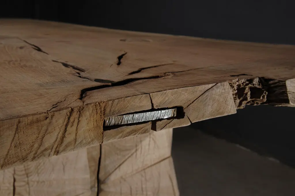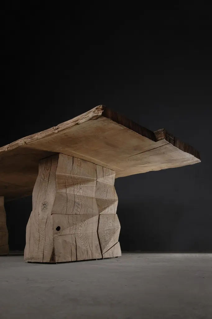 Massive Dining Table in Solid Oakwood by Denis MilovanovDimensions: H. 76 x W. 300 x D. 100 cm CustomizableMaterials:Solid oak (+ linseed oil)Hand sculpted by the artistWarm furniture’s made by Russian designer Denis Milovanov from "Soha" studio. Simplicity of shapes. Authentic material.Wooden items are created from oak and are boiled in oil from several days to several weeks, to achieve a natural wood coloration from a dark brown to a complete black color. Patterns are applied solely by chain saw.Unique piece made to order.-----Artist, designer and the founder of DENIS MILOVANOV and SÓHA brands, Denis Milovanov is a regular partaker of prestigious international exhibitions and fairs such as PAD Paris, Maison&Objets, Design Miami/Basel. Milovanov received the Product Design award at the Interni Design Awards in 2016. He collaborated with Zaha Hadid Architects in 2012 and Boris Vervoordt in 2015. The designer was born on April 25, 1975, in Moscow. He studied woodworking at the 303 Higher Technical School in 1990-1993. In 2012 Milovanov established DENIS MILOVANOV workshop where he created design-art objects and the functional kitchen utensils series. In 2016 he established the SÓHA brand.