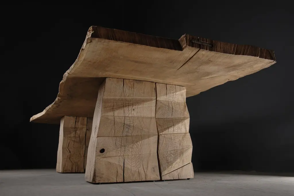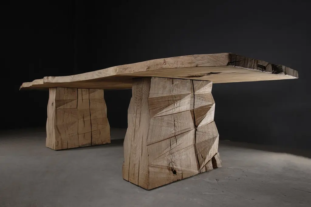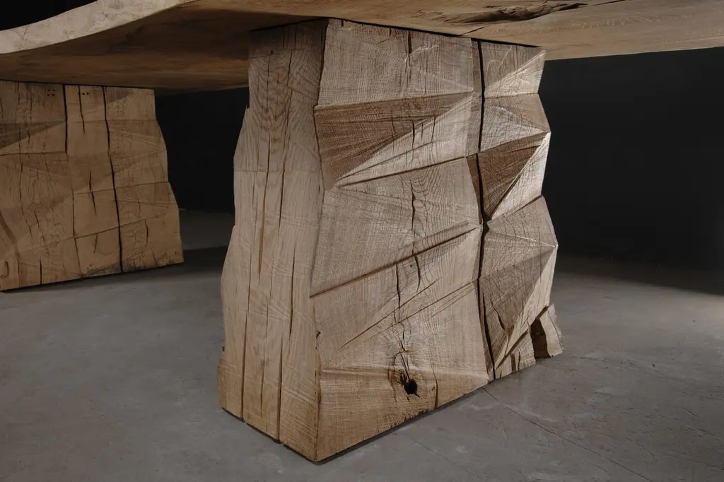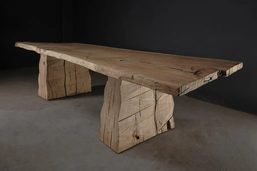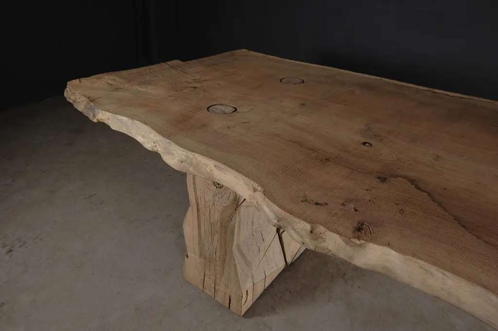 Customizable Sculpted Massive Dining Table In Solid Oak Wood, V8
