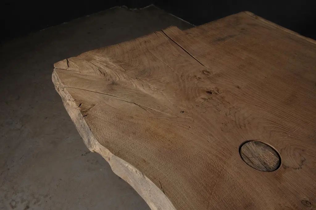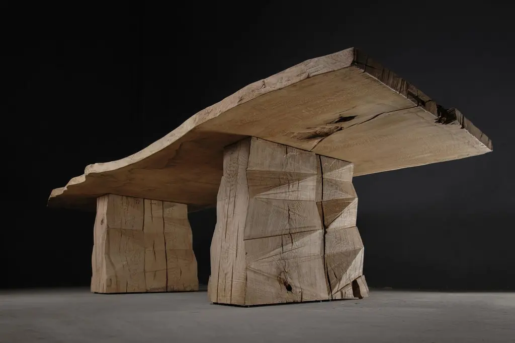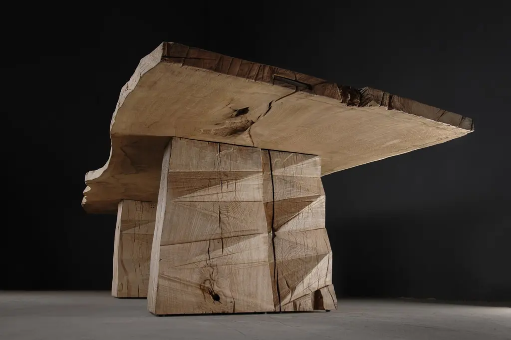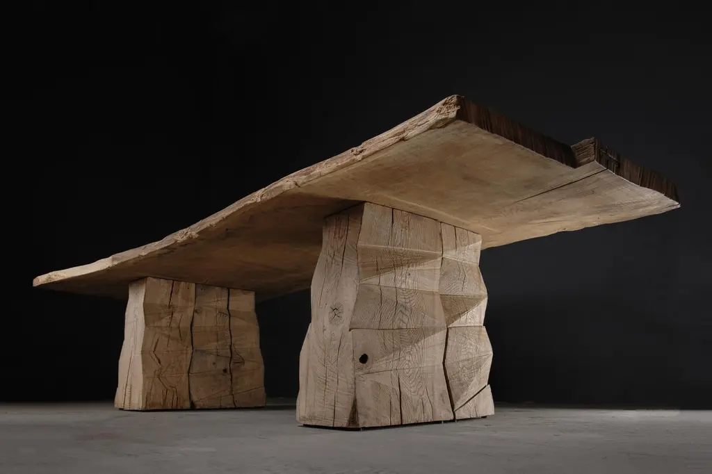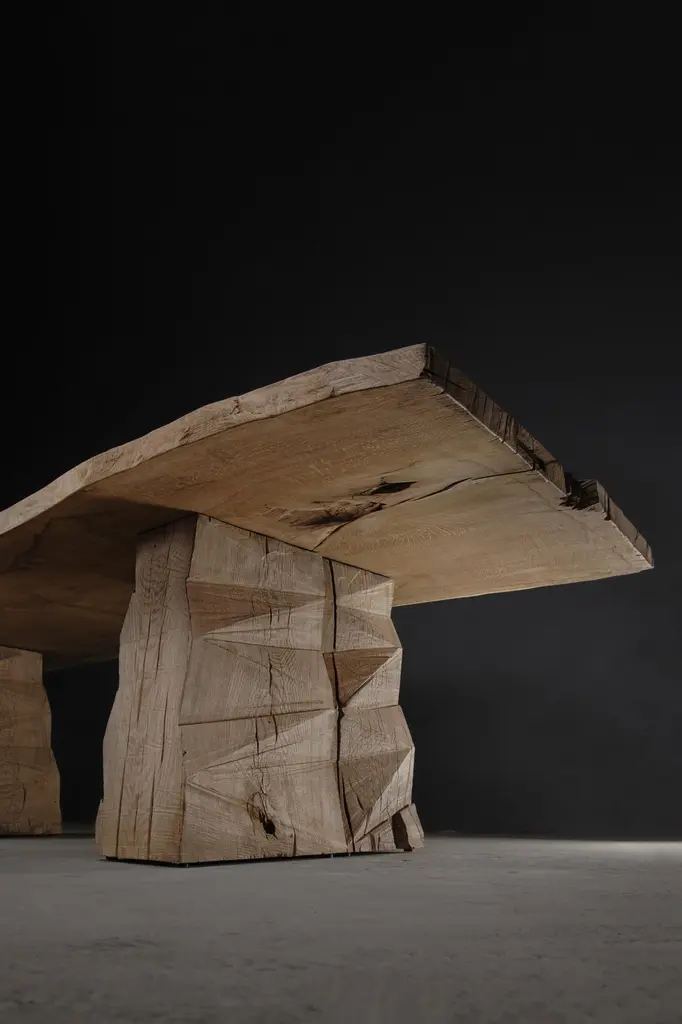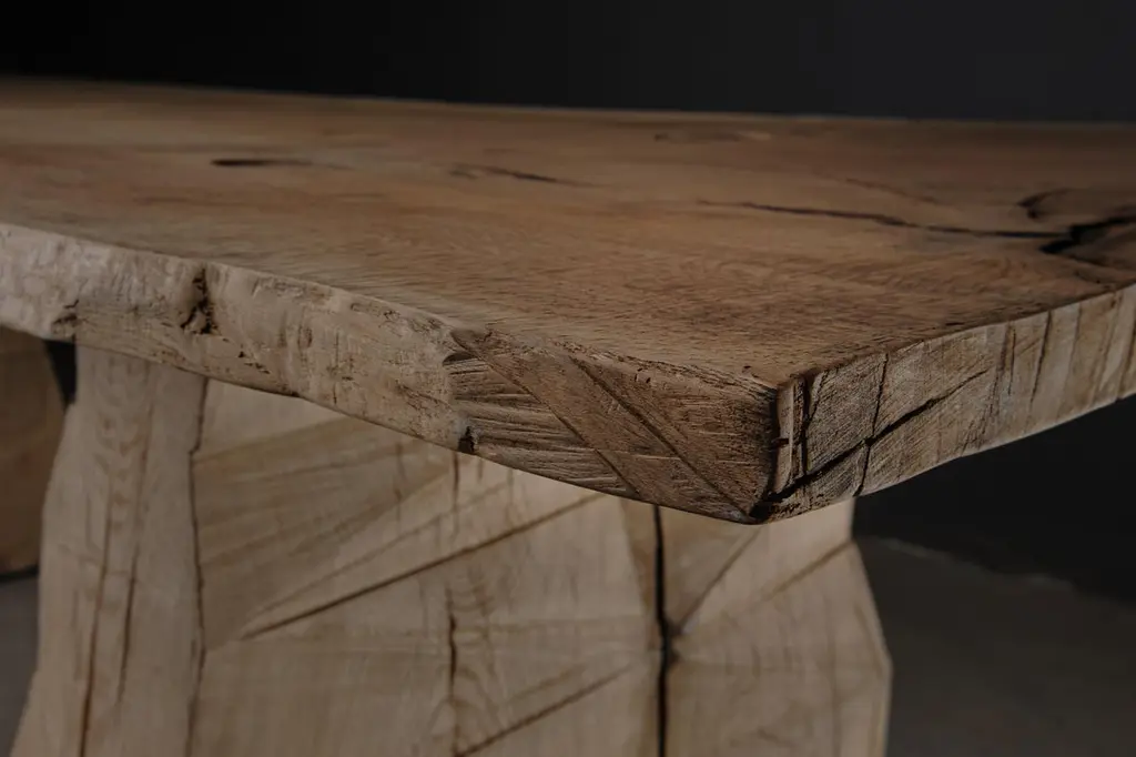 Customizable Sculpted Massive Dining Table In Solid Oak Wood, V8