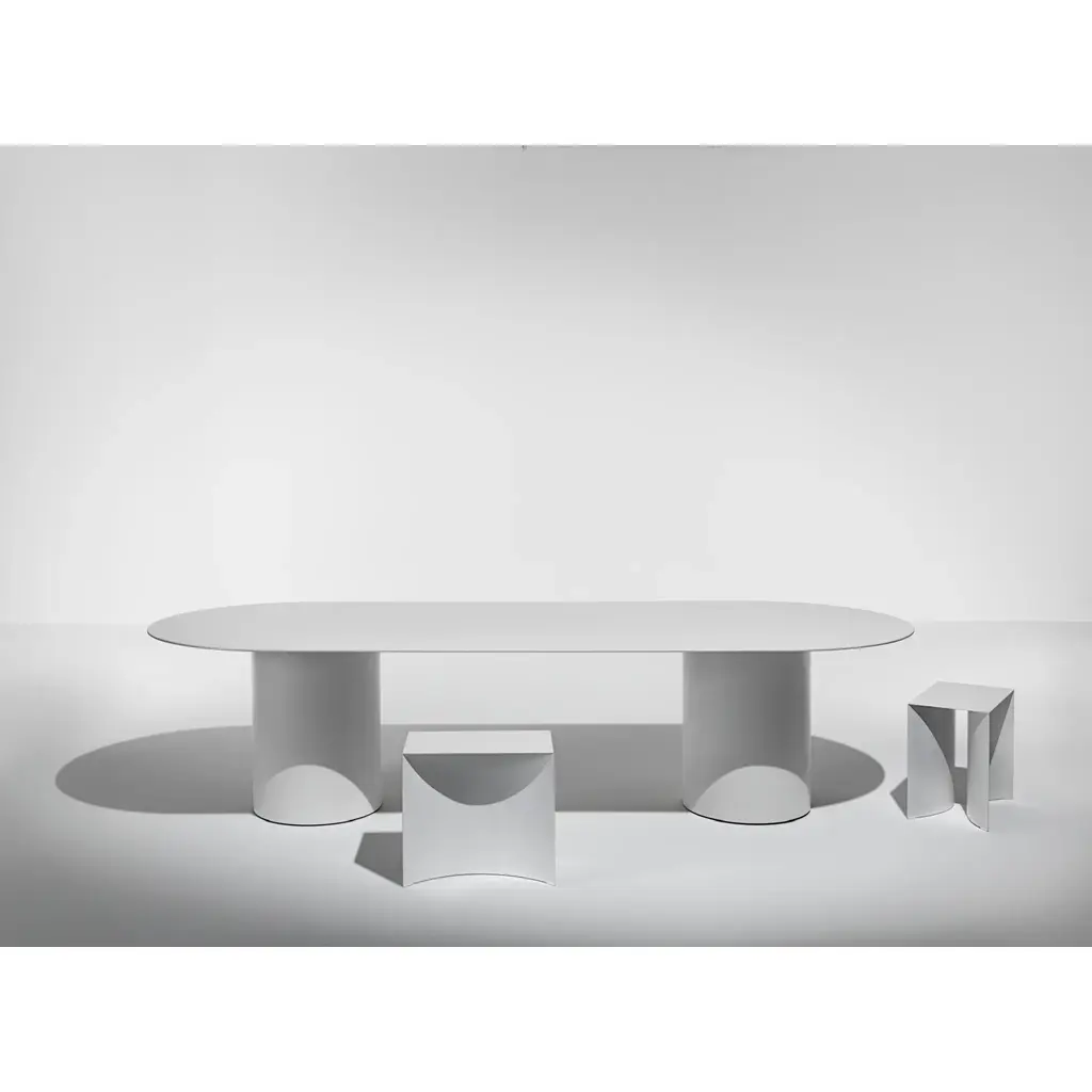 Discover the merging of form and function with the Desalto MM8 Cylindrical Base Dining Table. This table pushes the boundaries of design, utilizing the strength and sleekness of aluminum to achieve a minimum thickness of 8 mm. Experience the harmonious balance of aesthetics and structural integrity.