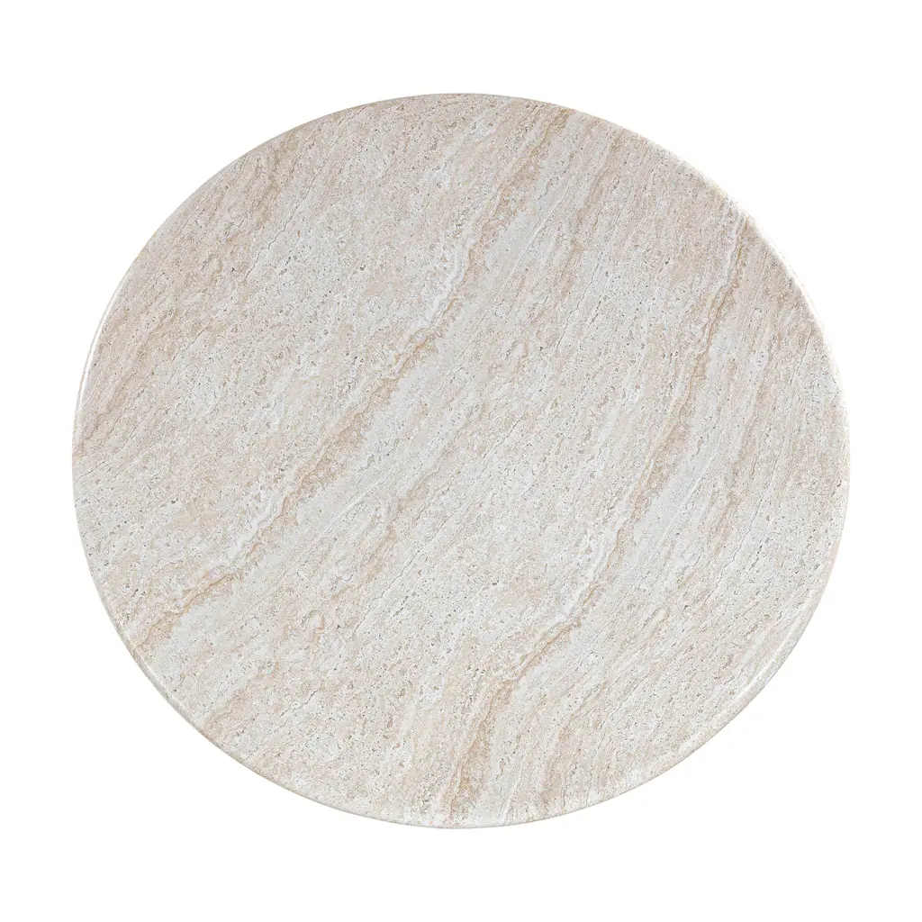 Introducing the Cynthia Travertine Concrete Indoor/Outdoor 54" Round Dining Table, a harmonious blend of style and durability. This fully concrete table, suitable for both indoor and outdoor use, boasts a walnut print pattern on the base and a stunning Travertine stone top, making it equally at home in your dining room or on your patio. Experience the timeless cool-factor of Travertine without the hassle. Thanks to the innovative print on concrete, this table is not only stylish but also easy to maintain, featuring a wipeable surface that resists dust and stains with ease.