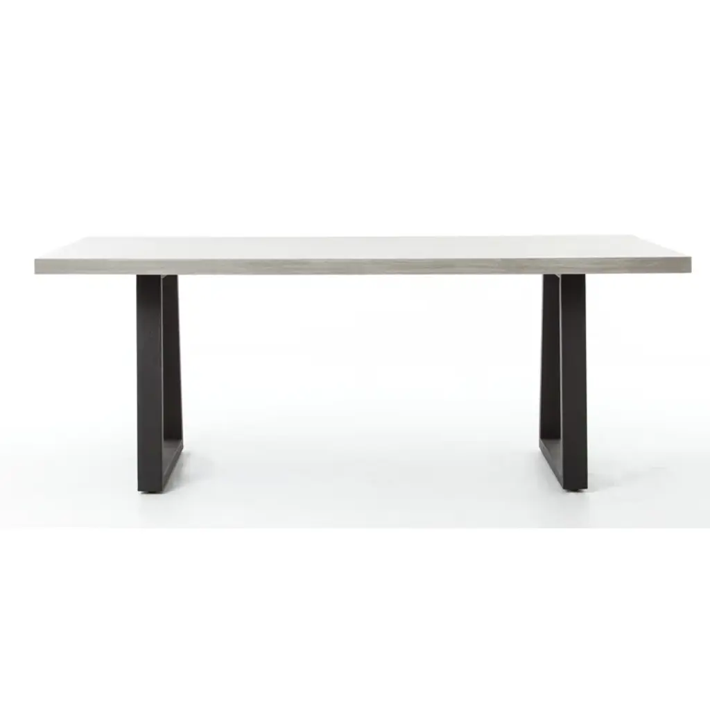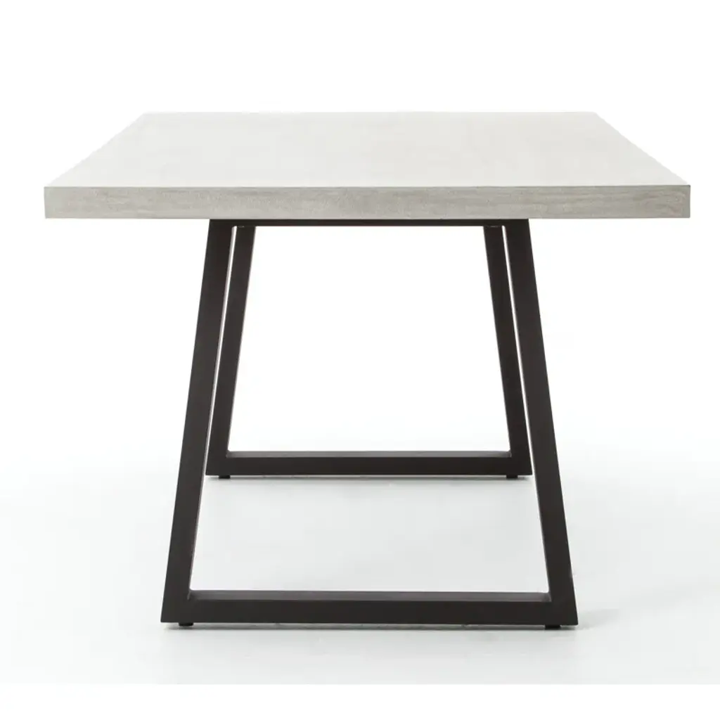 The industrial concrete dining table is a stunning piece that combines industrial elements with modern design, offering a unique look that will elevate any dining space. The concrete surface features a textured finish that adds a rustic touch and gives the table an edgy vibe. Its sturdy and durable construction ensures that it will withstand the test of time and provide a reliable surface for dining.