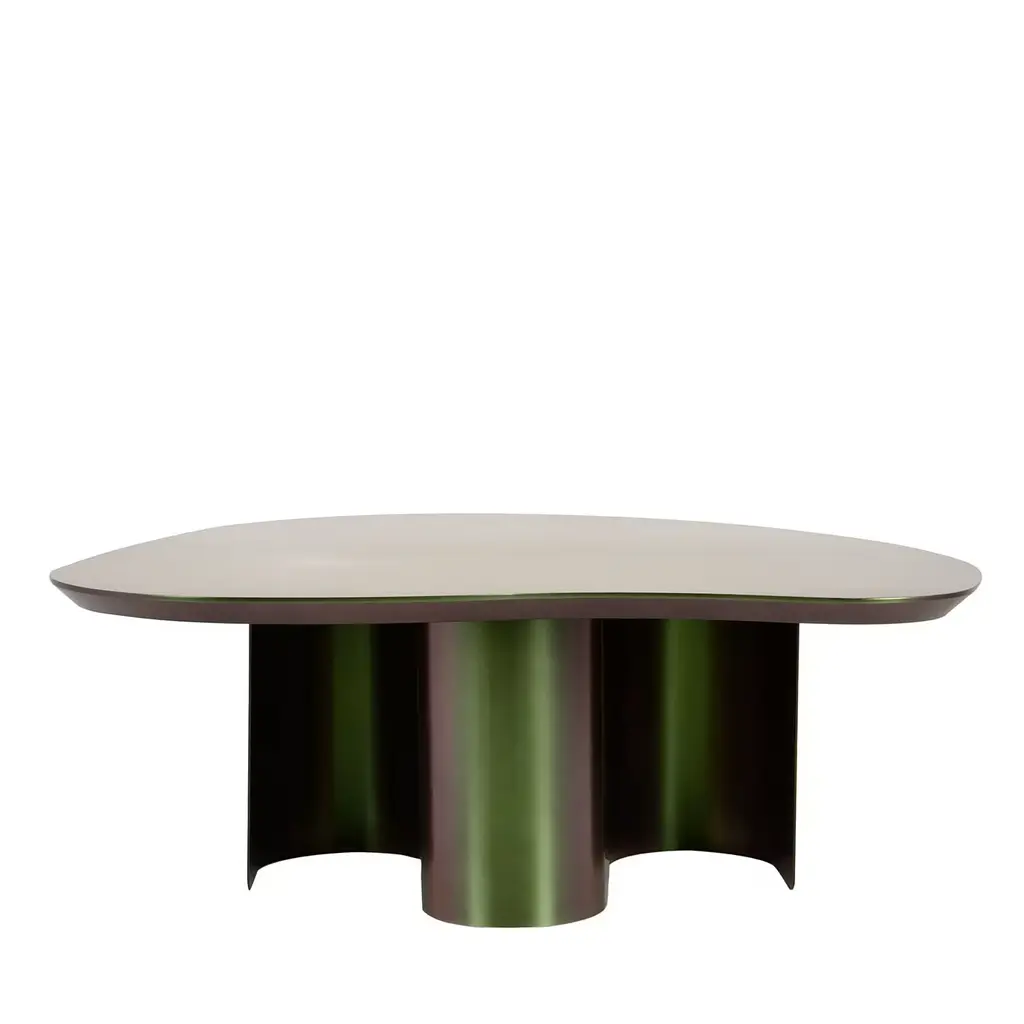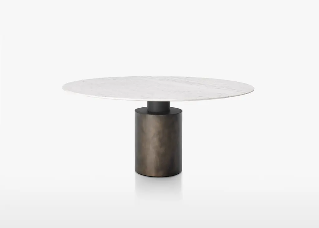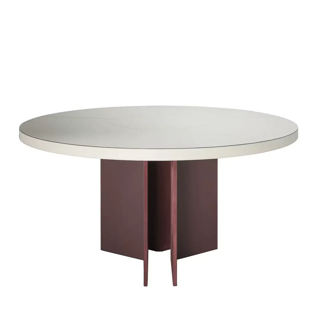 Daisy Dining Table comes with an 8mm glass + 5mm gray ceramic top and black lacquer base.