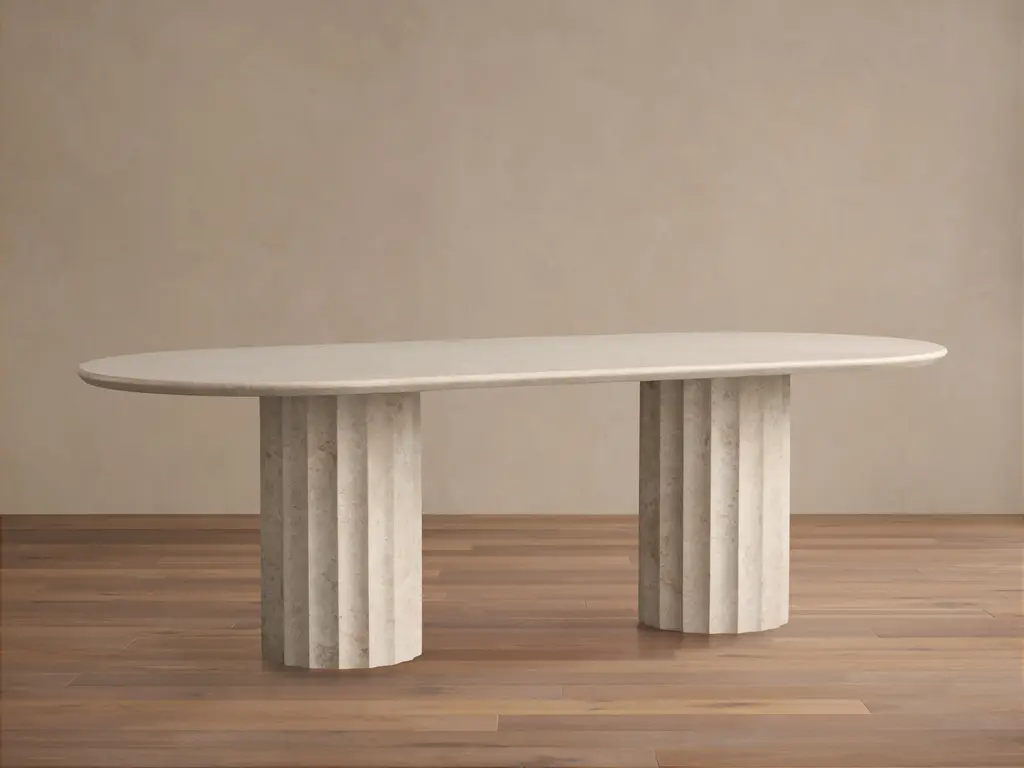A modern take on a timeless style, our Danae Collection boasts a Roman column-inspired design that brings a touch of classical elegance to your dining room. Artfully crafted from marble stone, Danae’s curved tabletops sit atop pedestal bases creating both stability and a striking visual appeal.