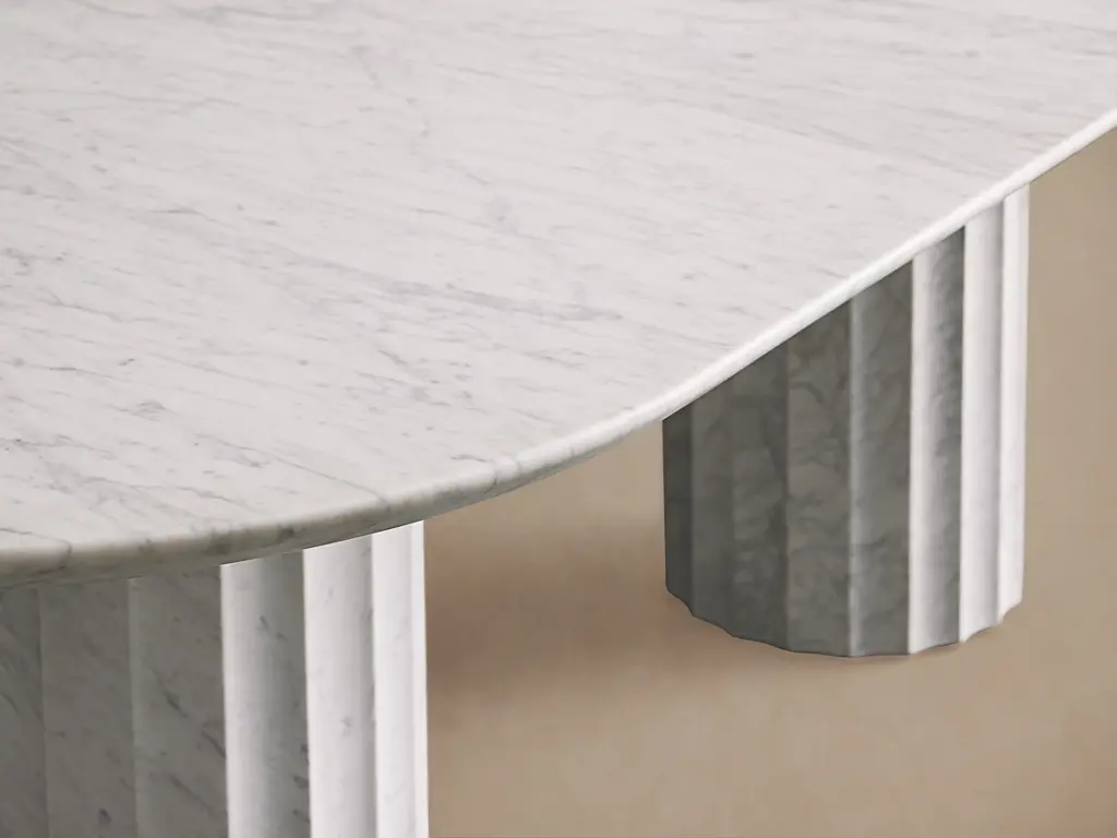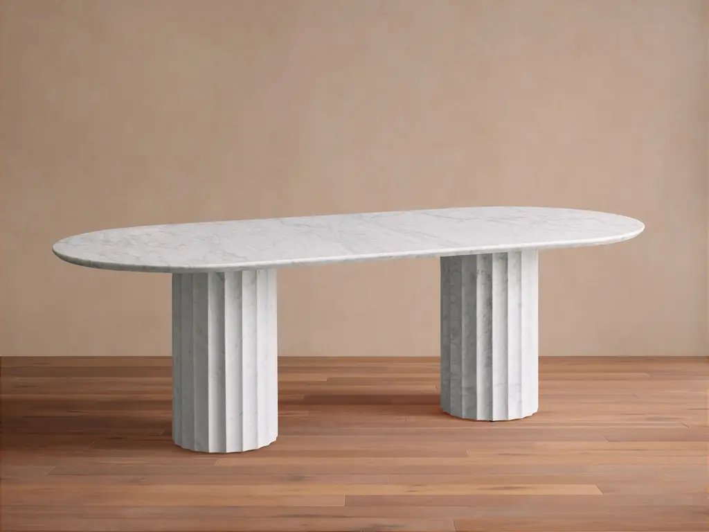 A modern take on a timeless style, our Danae Collection boasts a Roman column-inspired design that brings a touch of classical elegance to your dining room. Artfully crafted from marble stone, Danae’s curved tabletops sit atop pedestal bases creating both stability and a striking visual appeal.