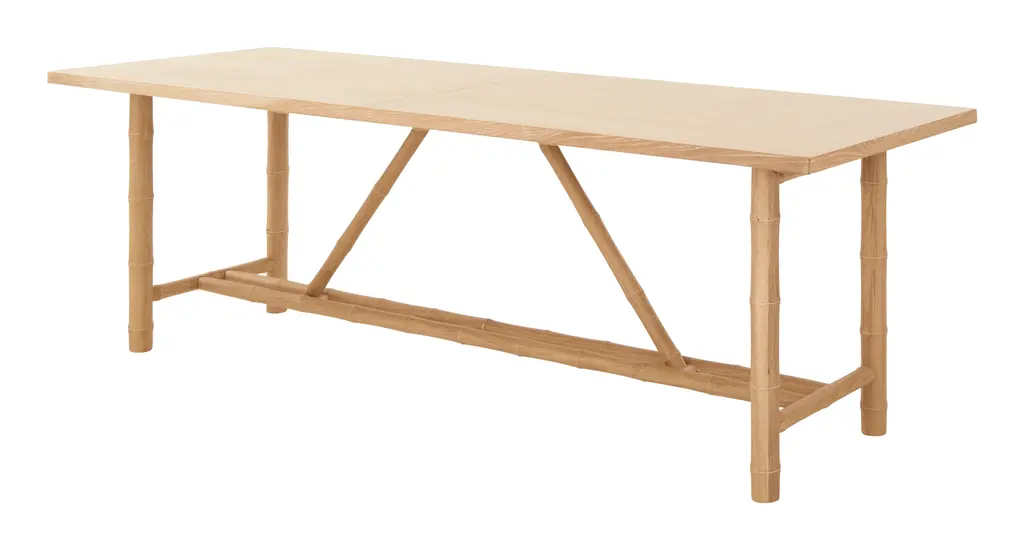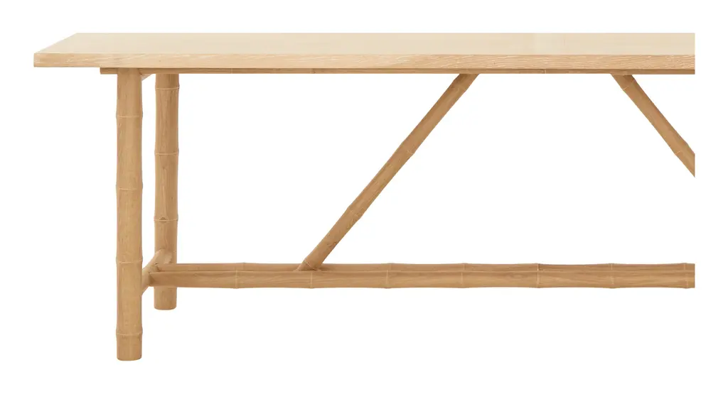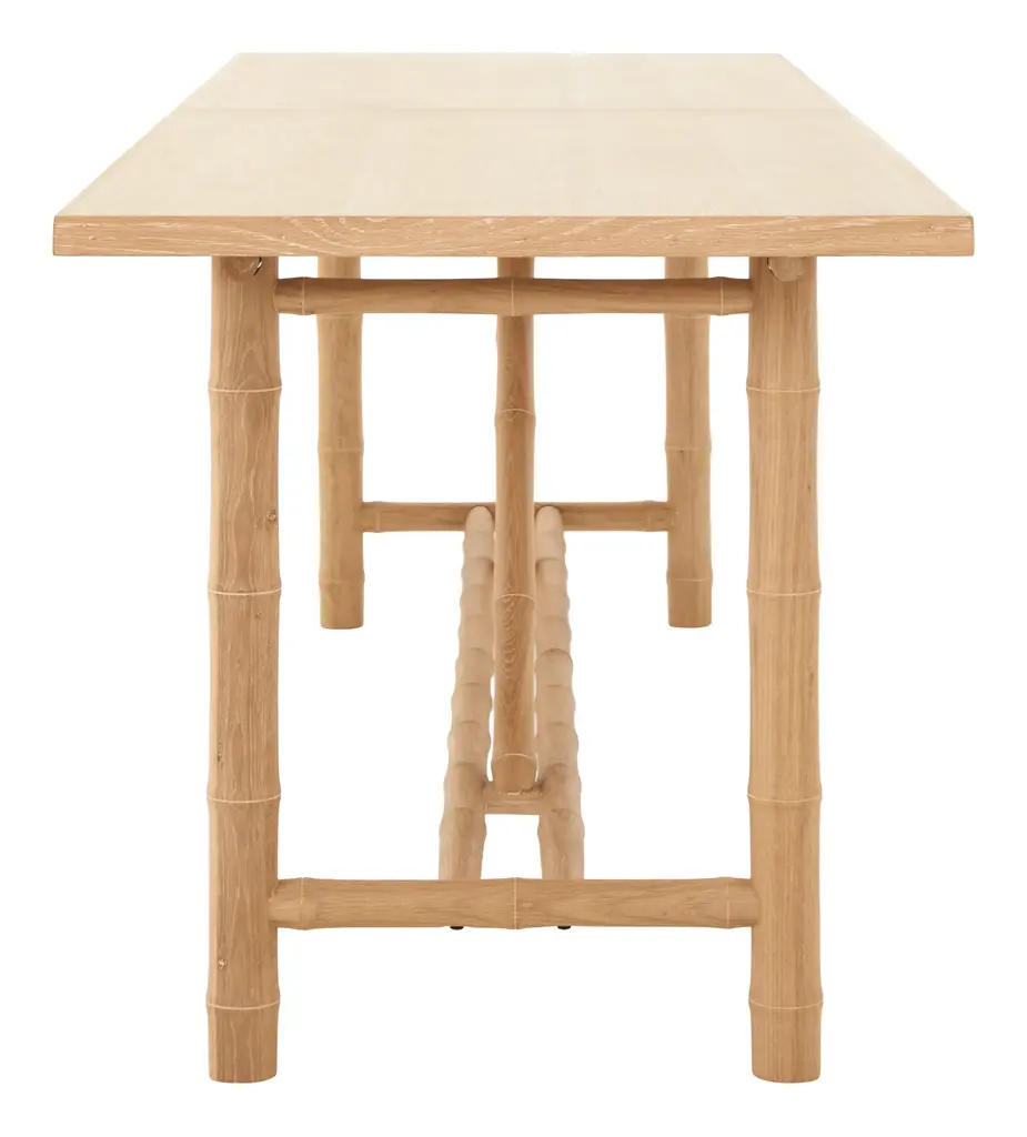 Sit down to dinner with our earthy Danai Dining Table. Light and airy in design, Danai is crafted from solid oak wood into a simple, narrow silhouette and coated with a bleached cerused finish that highlights the natural beauty of its graining. While its tabletop may be sleek and streamlined in design, we love how its faux bamboo carved base adds a bit of visual texture and vintage-inspired charm. Right at home in a boho-modern dining room, its slim size and breezy aesthetic also make Danai an effortless addition to a chic beach cottage. •oak •cerused finish Dimensions•94.5"W x 30"D x 30.5"H