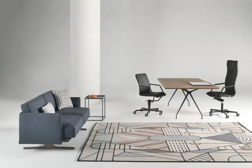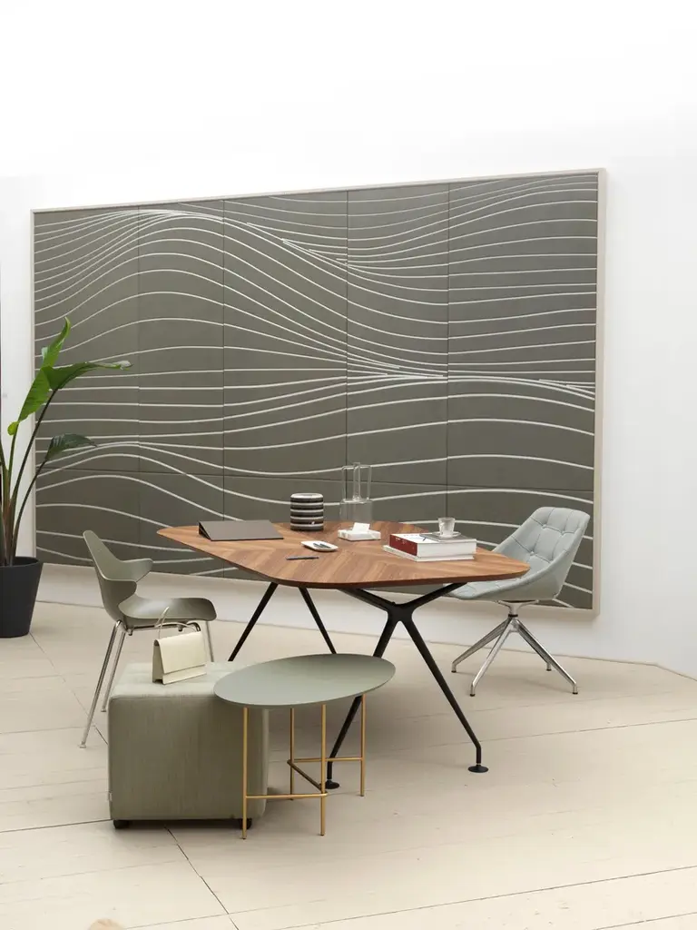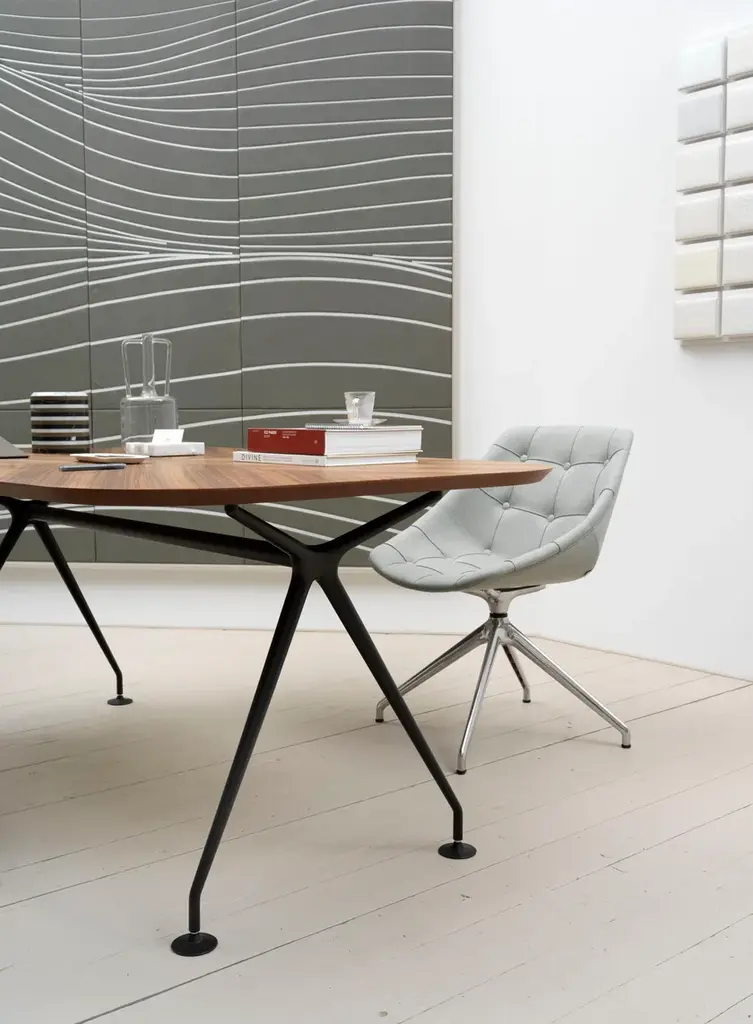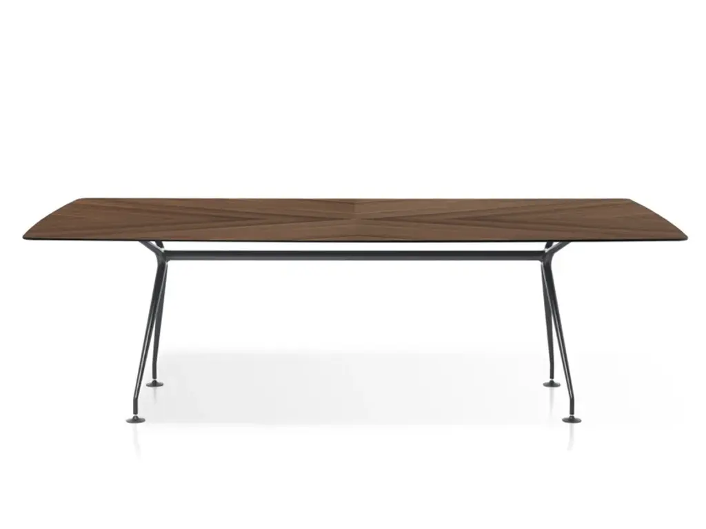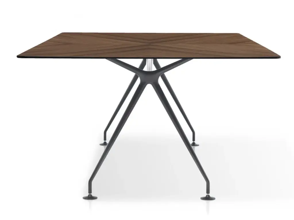 Dapper is a large table, designed for meeting or dining rooms, Dapper is a refined and practical table that embellishes contract or domestic environments. The top, available in walnut or lacquered glass version, is supported by an aluminium structure of great aesthetic impact. It is available in two sizes.