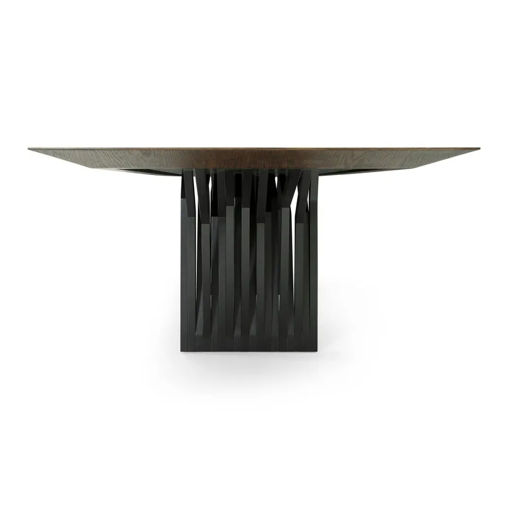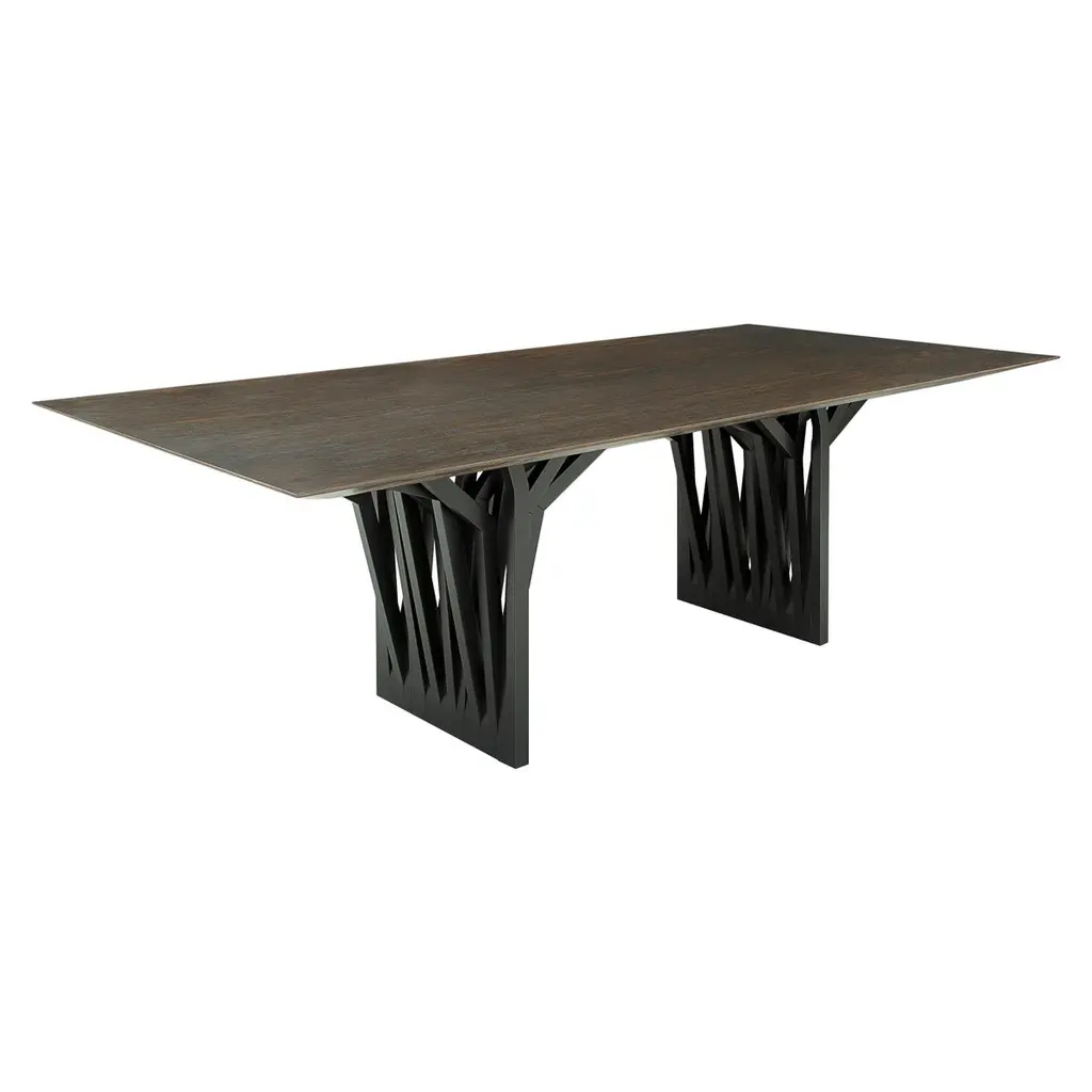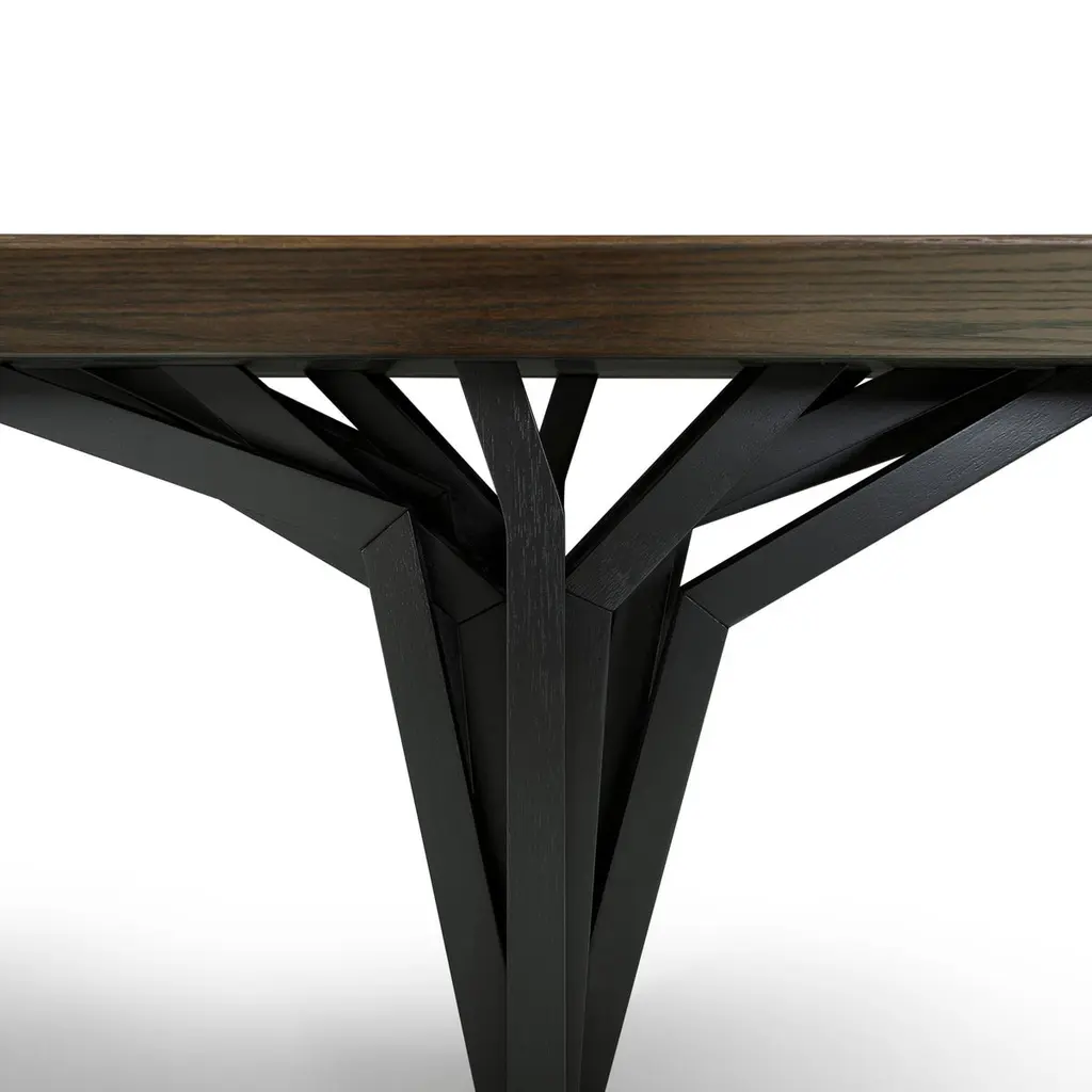 Dark Oak Dining Table With Sculptural Black Base And 98-Inch Top – Radi Line