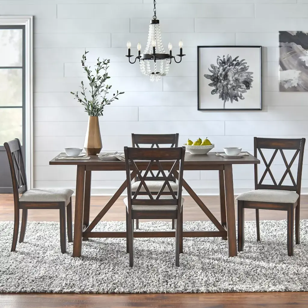 Create an inviting gathering space for family and friends with the Dawson Modern Farmhouse Trestle Dining Table from Buylateral. Designed with a classic rustic style that works well with a variety of interiors. The 64-inch rectangular table provides space for many to sit and enjoy mealtime. Constructed of solid rubberwood, detailed with a unique trestle base for added strength and interest in a warm rustic brown finish.