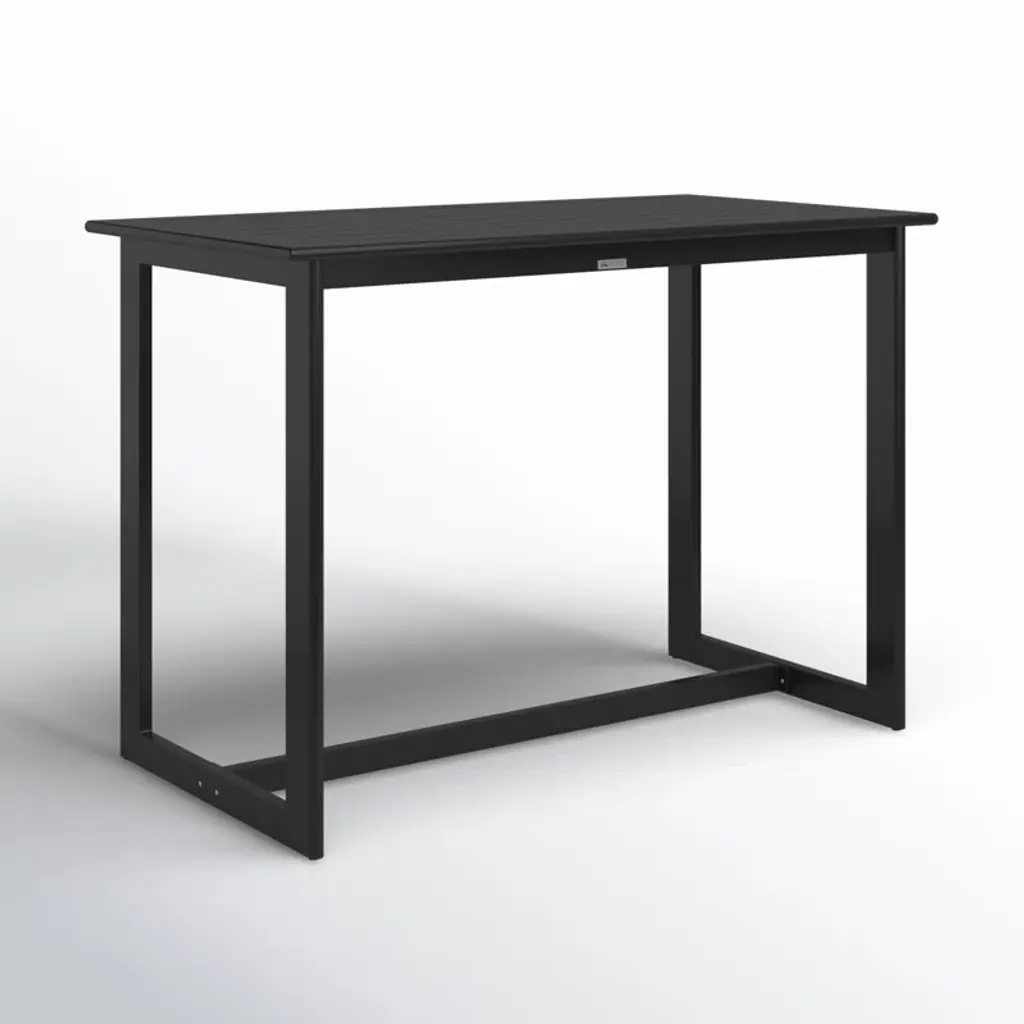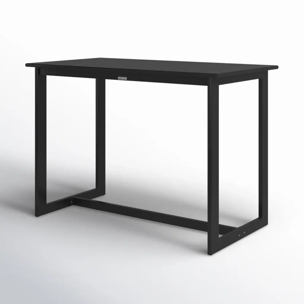 Let's serve up some delicious style – and functionality – with this bar-height dining table. Built from solid black aluminum, it promises sturdiness that's weather-resistant, promising outdoor meals and memories for seasons to come. Its sleek, clean lines fit perfectly with your contemporary or farmhouse decor, providing an open invitation for casual family breakfasts or festive evening feasts.