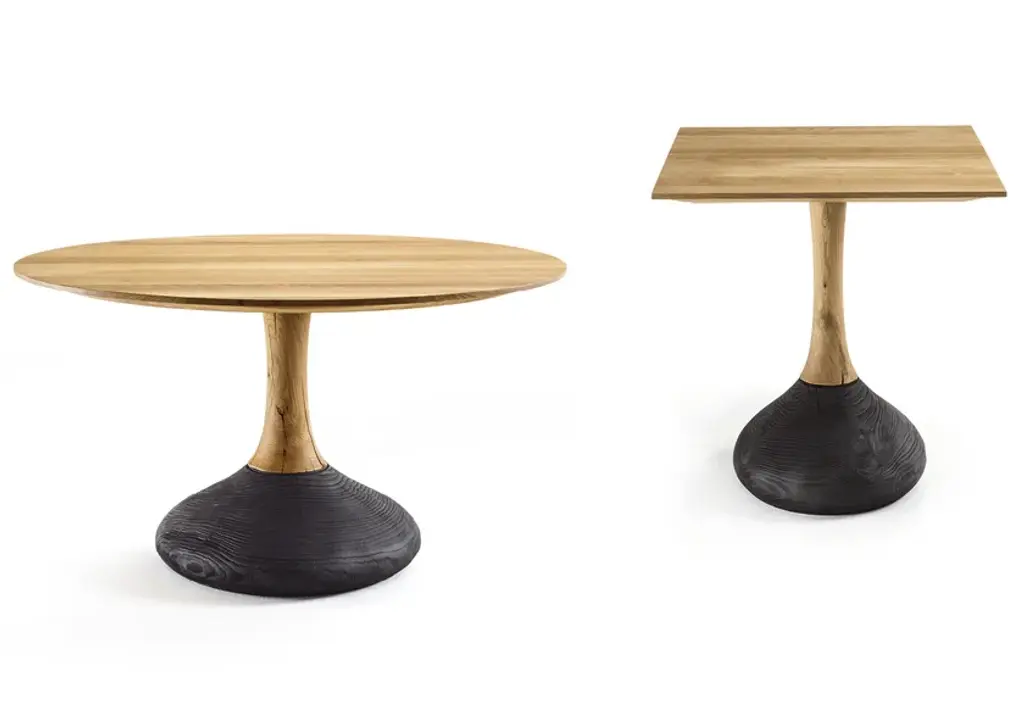 Decant is a round or square table with top in solid wood in glued lists. Base composed of a central leg in the same wood as the top and lower part in vulcano cedar.STANDARD VERSION: CENTRAL LEG IN THE SAME WOOD AS THE TOP, BASE IN CEDARWOOD VULCANO FINISHAVAILABLE FINISHES:A1: walnut with knotsA2: oak with knotsA3: oak with knots finish: whitened, mystic black, vintage, neutroA4: oak with knots pigmented: ash grey, white milk, total black